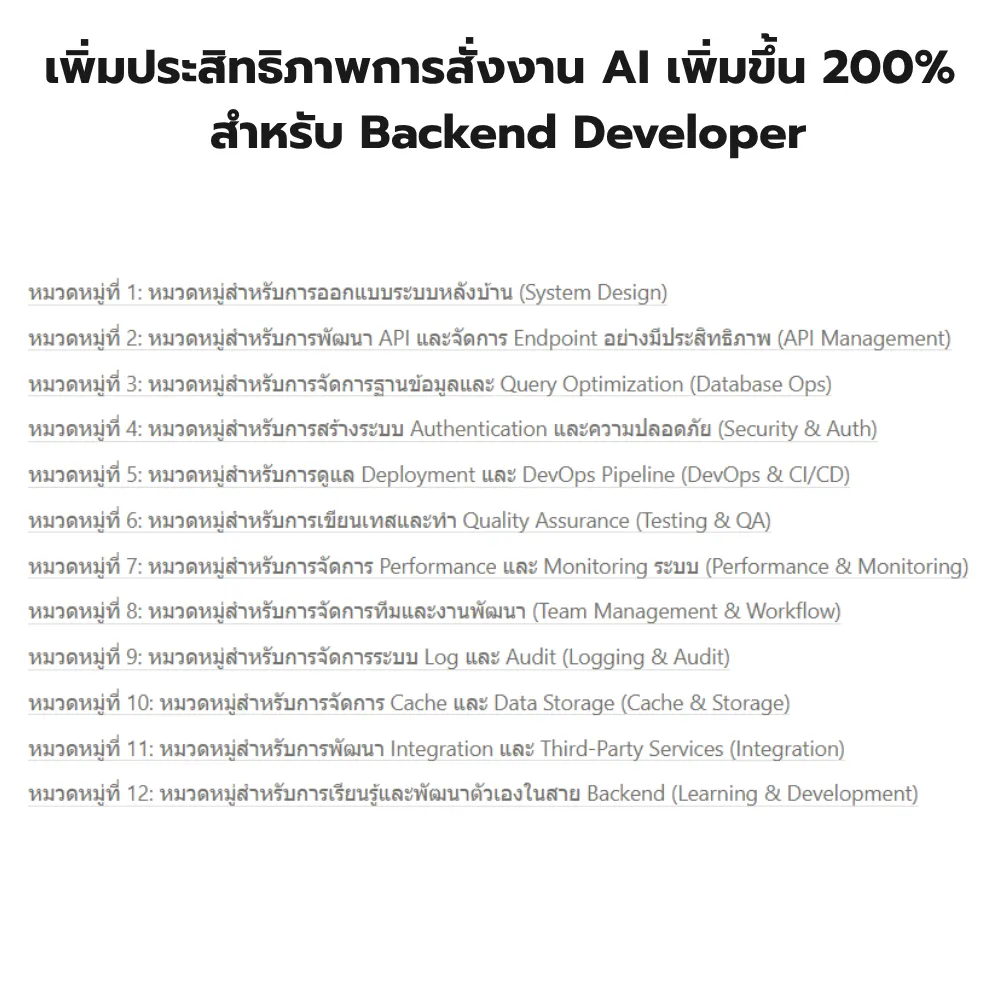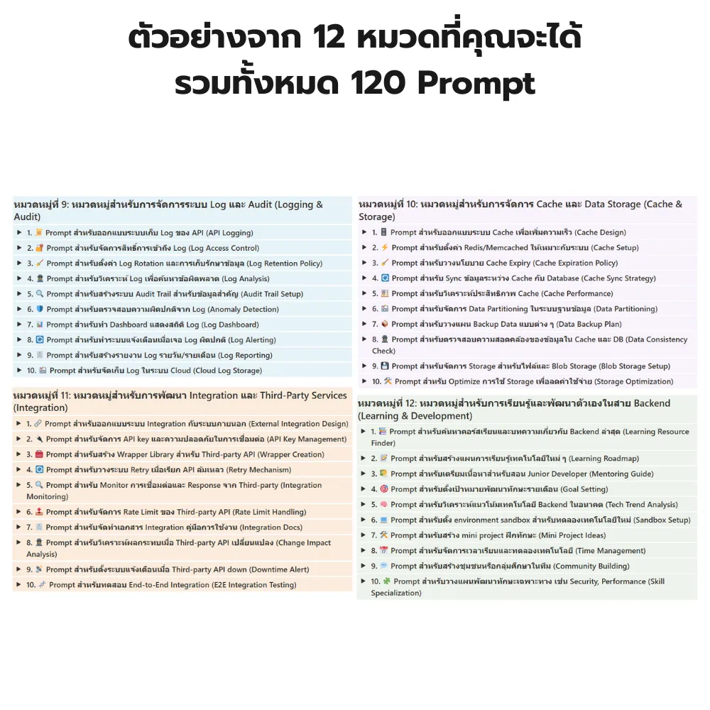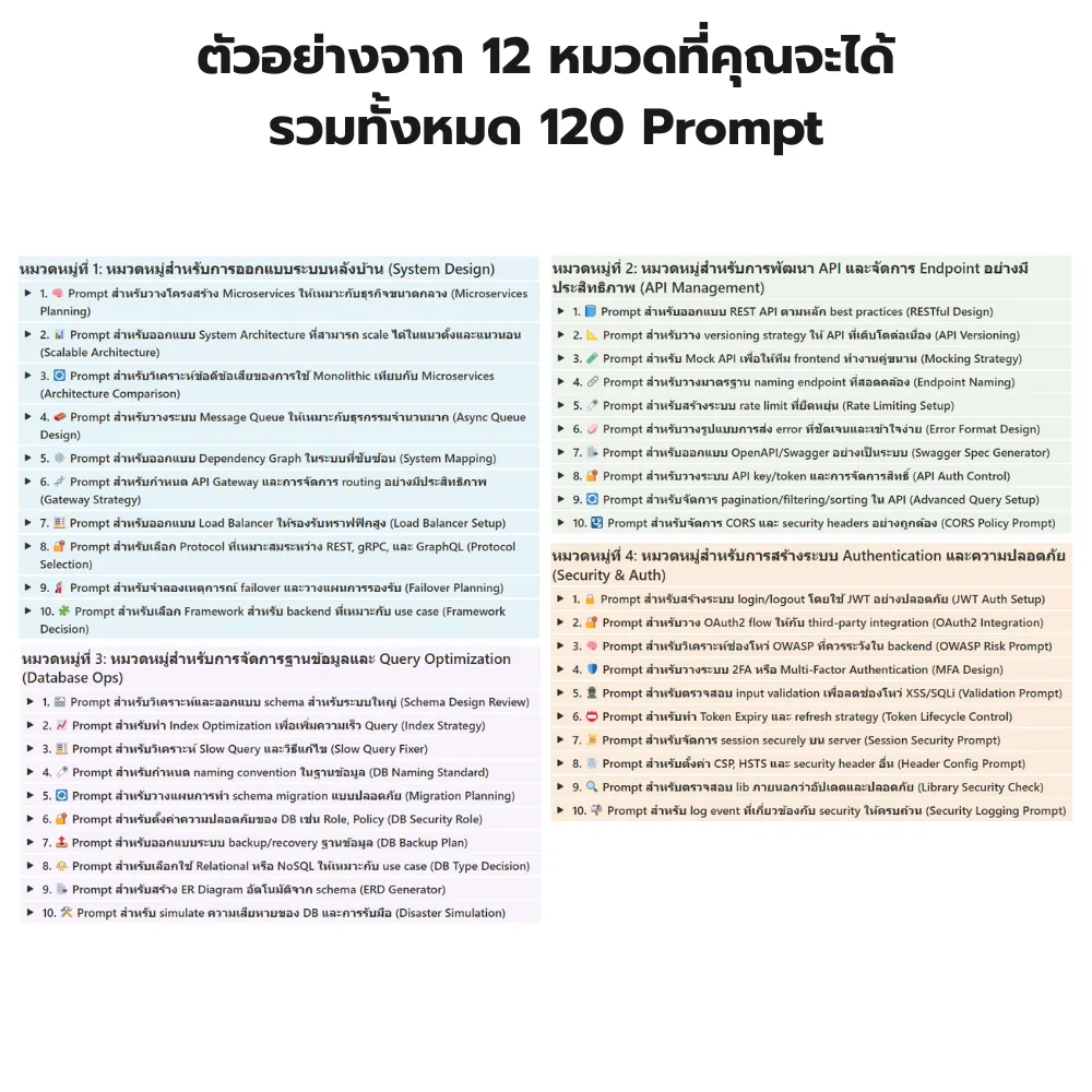 ✔ Prompt สำหรับออกแบบ API / เขียนฟังก์ชัน / ตั้งค่า Server / จัดการฐานข้อมูล