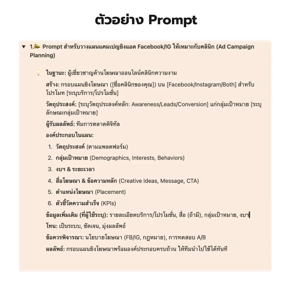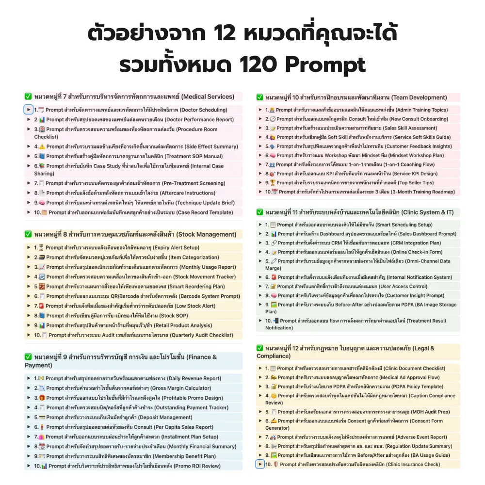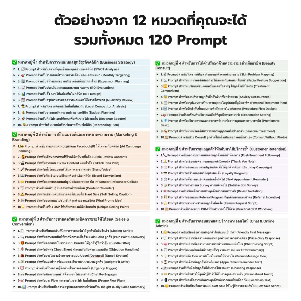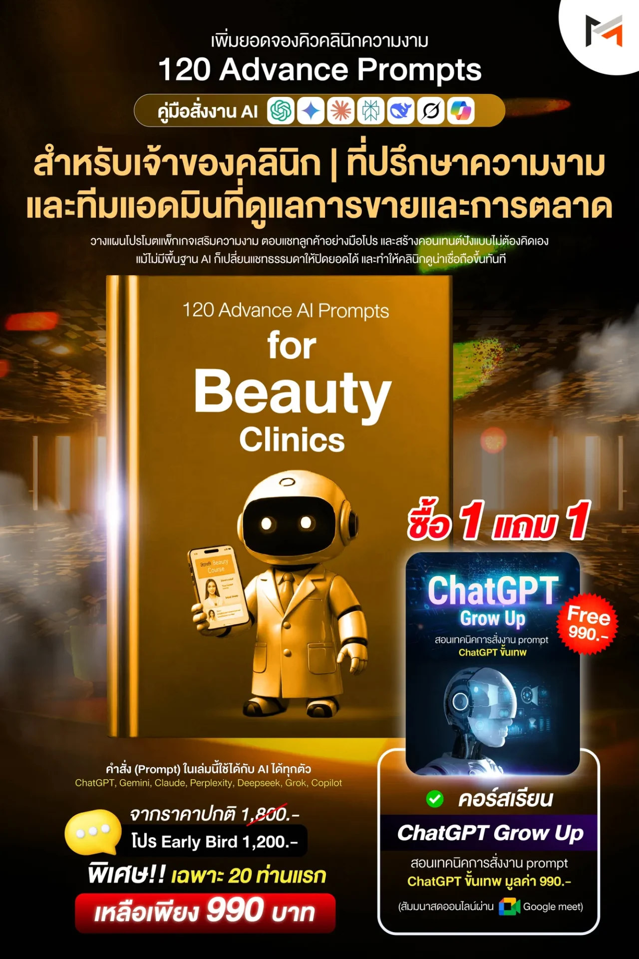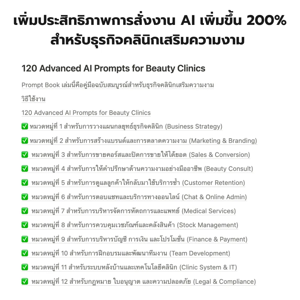 E-book 120 คำสั่งขั้นสูงสำหรับคลินิกเสริมความงามโดยเฉพาะ (Ultimate Prompt Book: 120 Advanced AI Prompts for Beauty Clinics)