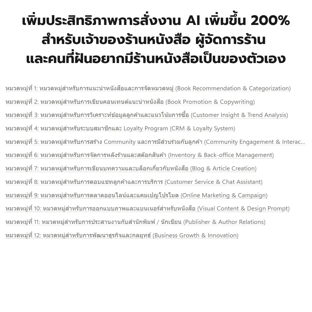 รวมพรอมต์ AI ที่ช่วยให้ร้านหนังสือโปรโมตง่ายขึ้น – ขายดีขึ้น – และสื่อสารน่าสนใจขึ้นทุกช่องทาง