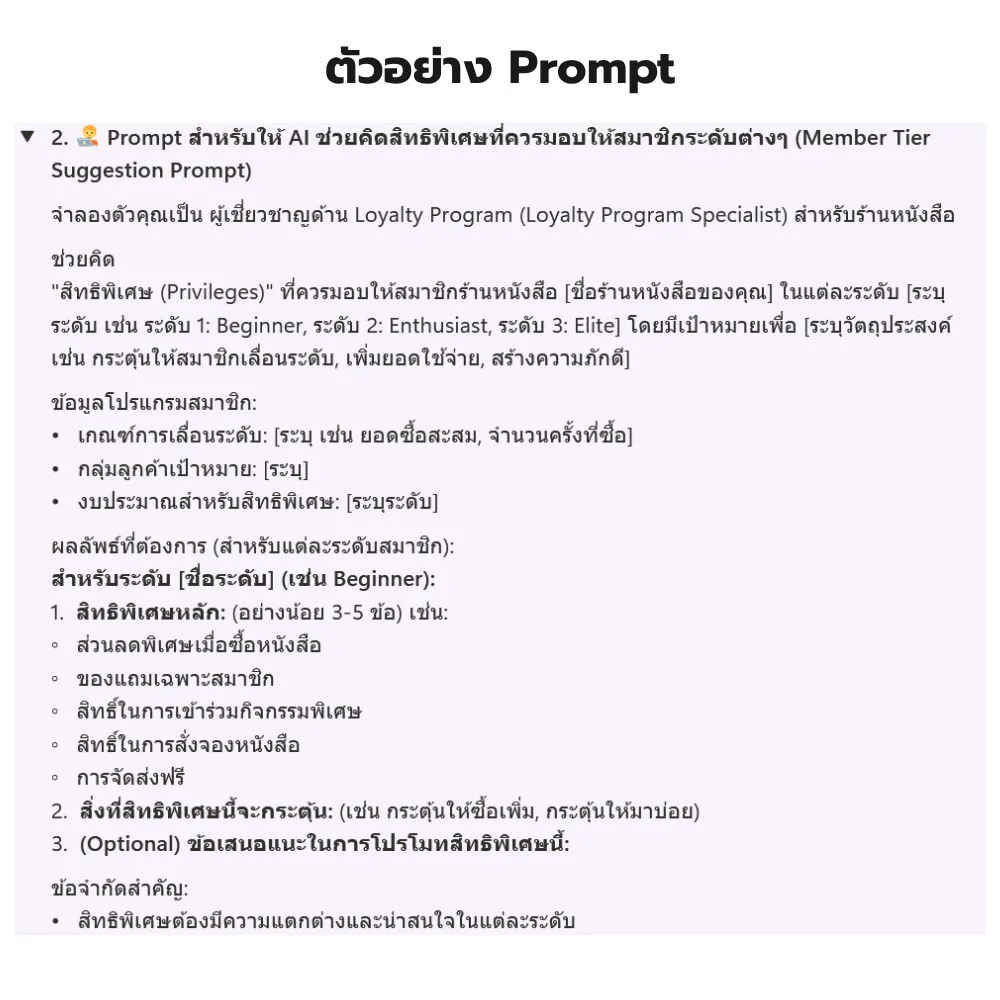 ✔ Prompt สำหรับตอบคำถามลูกค้า / แนะนำหนังสือตามความสนใจ / เขียนข้อความใน Line OA