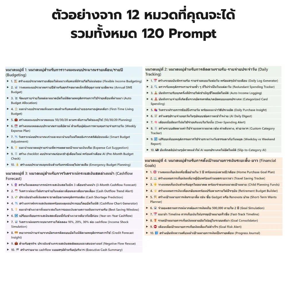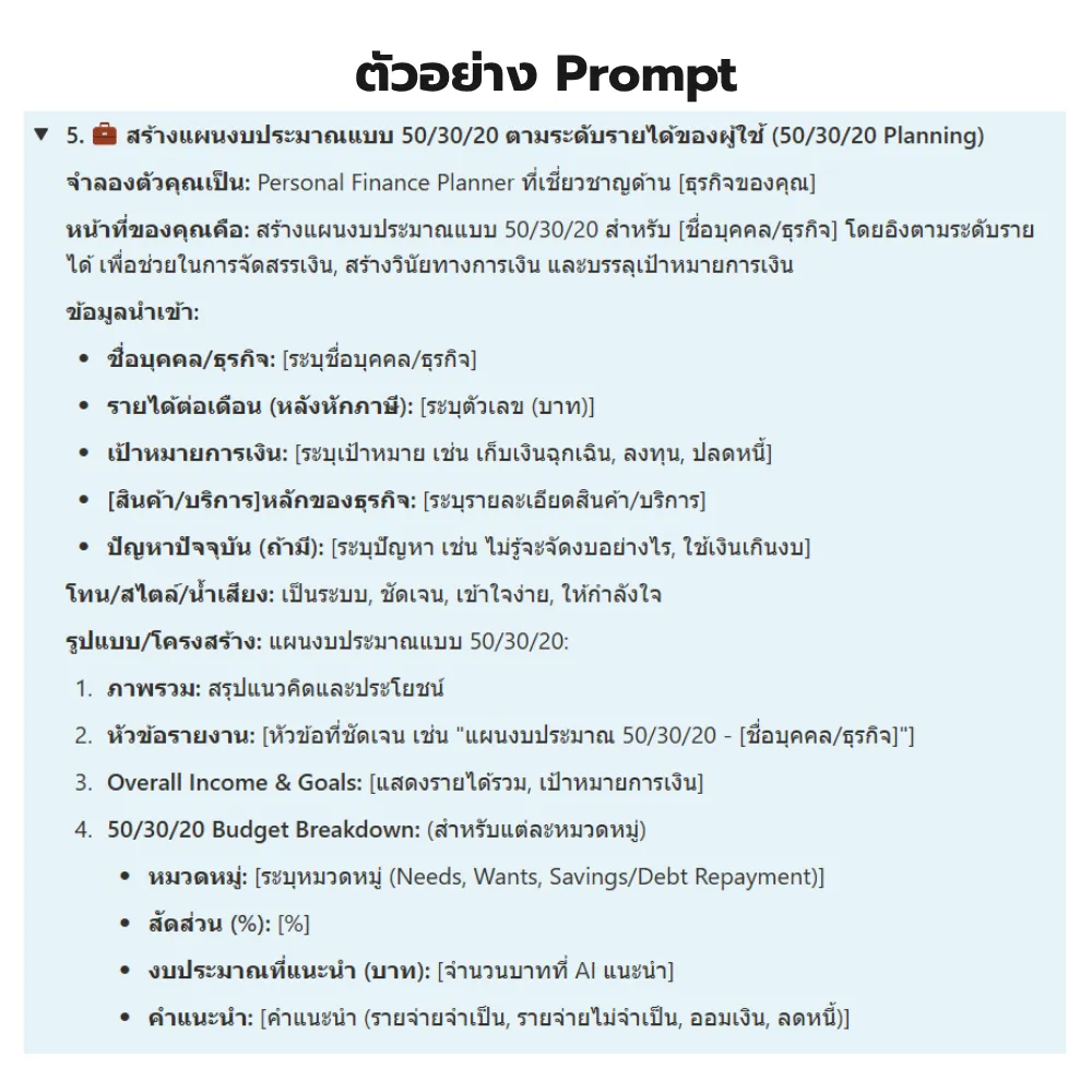 ✔ Prompt สำหรับวางแผนงบประมาณประจำเดือน / ปี / โปรเจกต์ / แผนลงทุน
