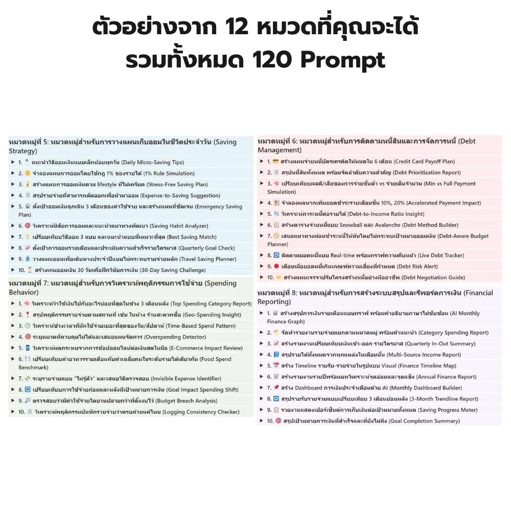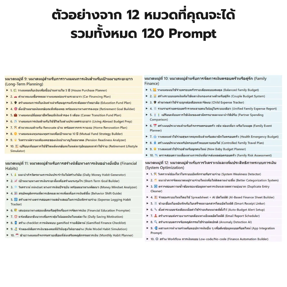 E-book 120 คำสั่งขั้นสูงสำหรับการวางแผนงบประมาณและบริหารกระแสเงินสดโดยเฉพาะ (Ultimate Prompt Book: 120 Advanced AI Prompts for Budget Planning & Cashflow Mastery)
