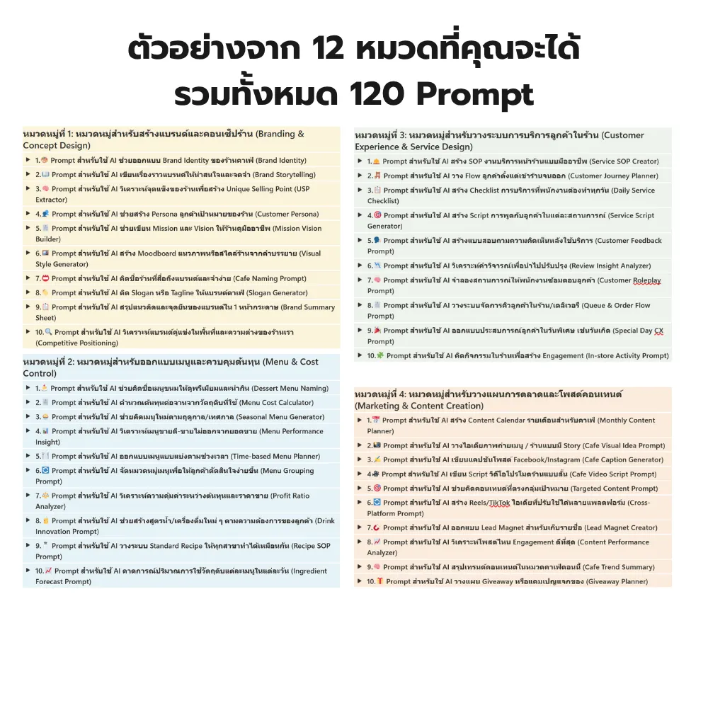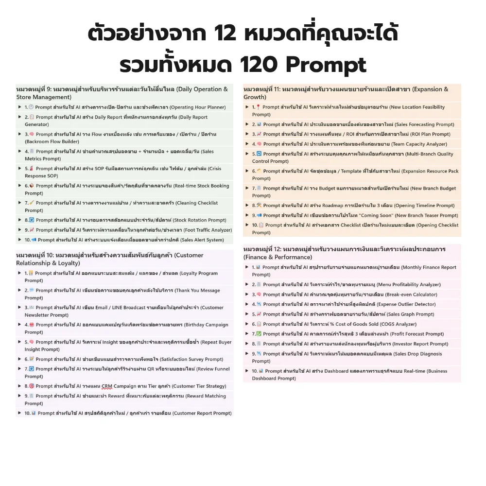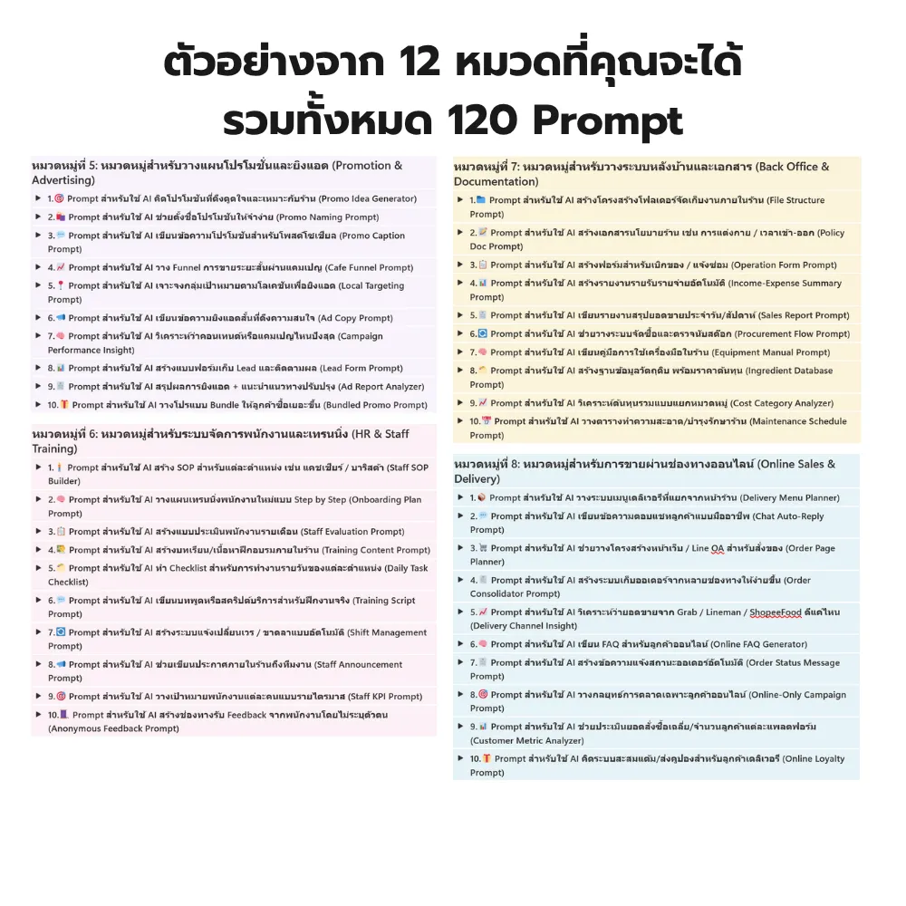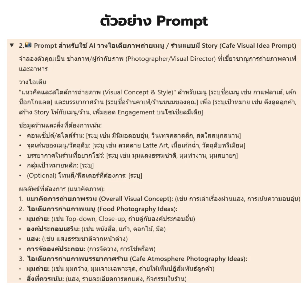 ✔ Prompt สำหรับคุยกับ AI เพื่อคิดเมนูใหม่ / เขียนข้อความโปรโมตร้าน / วิเคราะห์ลูกค้า