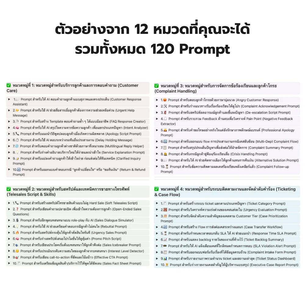 ✔ 120 Prompt สำหรับเขียนสคริปต์สนทนา – โทรขาย ตอบข้อโต้แย้ง แจ้งข้อมูล และบริการหลังการขาย