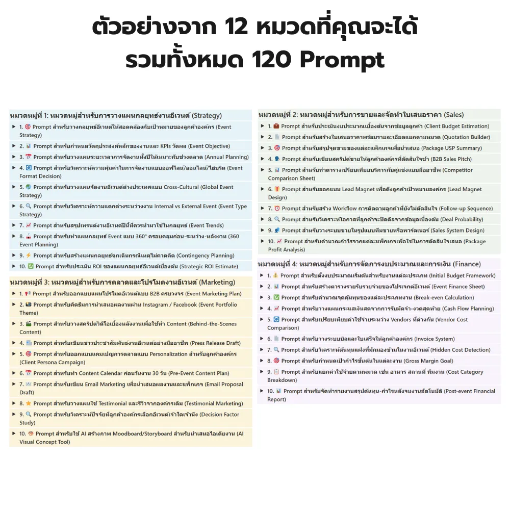 E-book 120 คำสั่งขั้นสูงสำหรับวางแผนจัดงานและอีเวนต์องค์กรโดยเฉพาะ (Ultimate Prompt Book: 120 Advanced AI Prompts for Event Planner & Corporate Event)