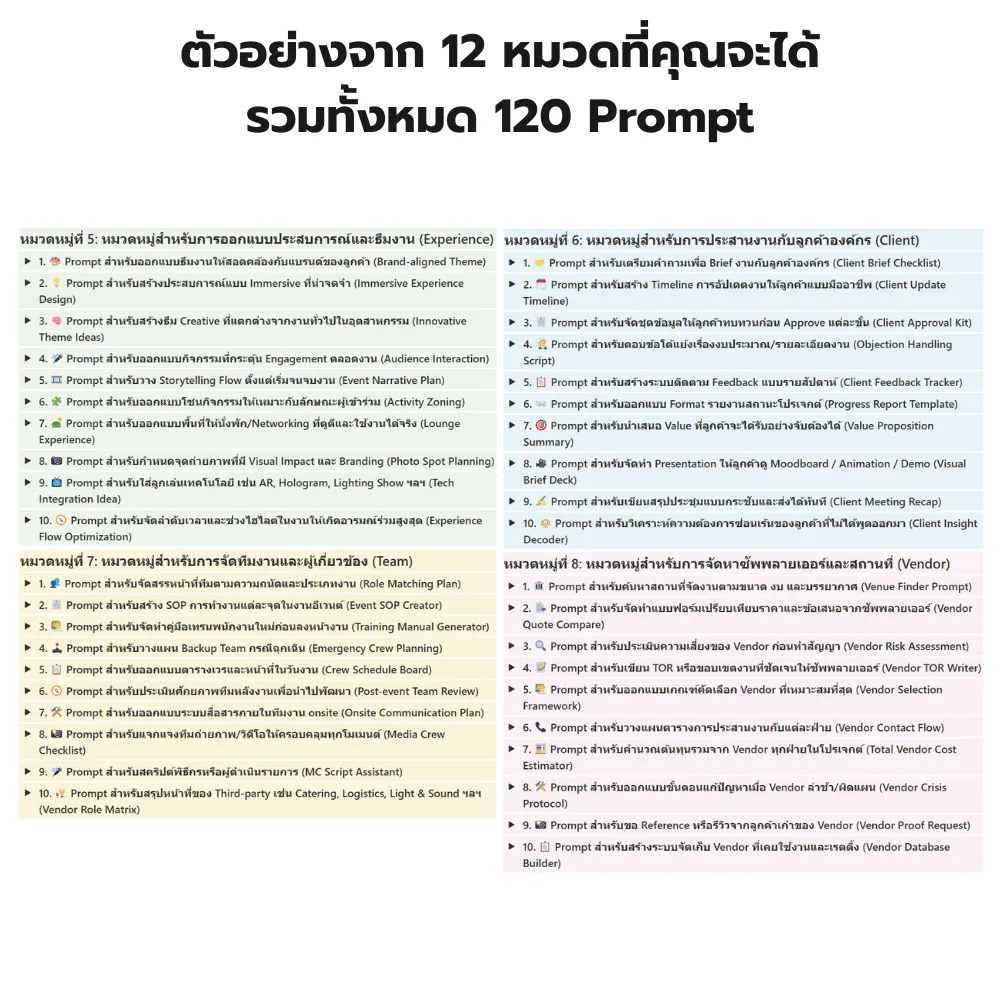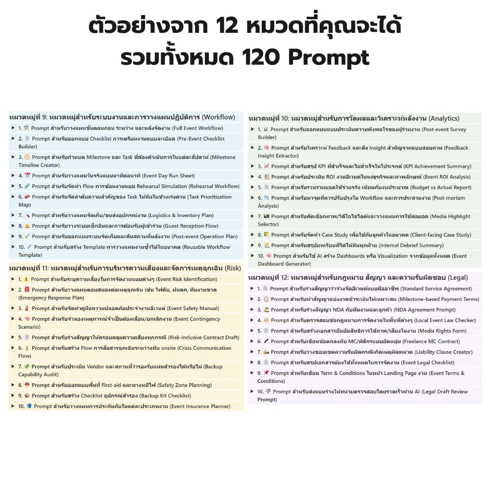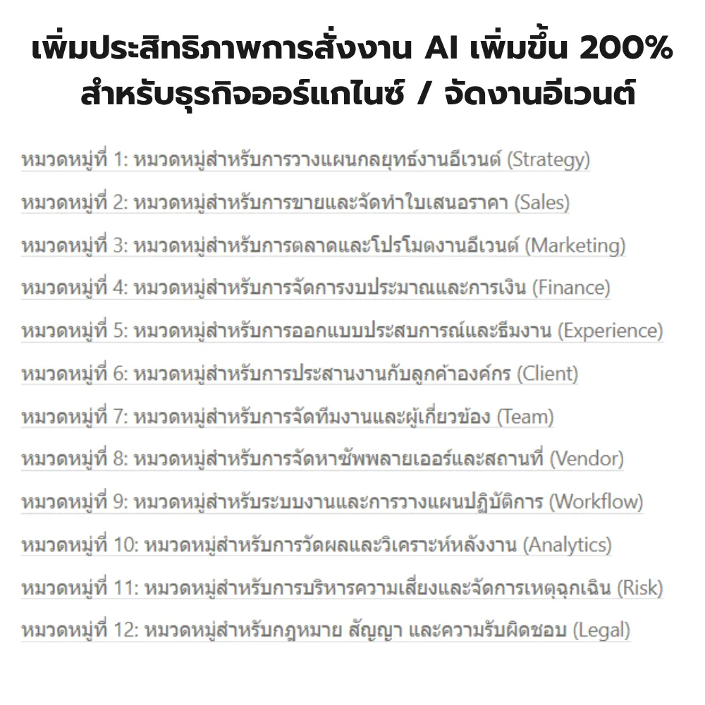 ✔ Prompt สำหรับเขียนแผนงาน / โครงสร้างอีเวนต์ / ลำดับกิจกรรม / เอกสารเสนอลูกค้า
