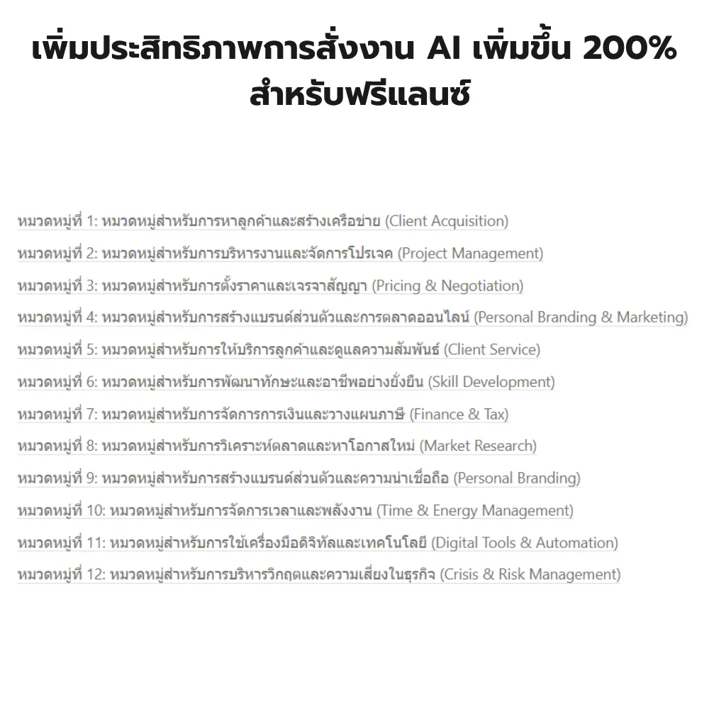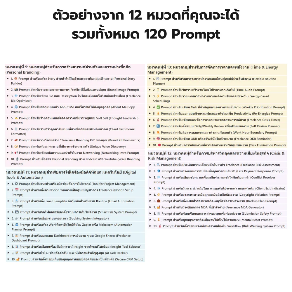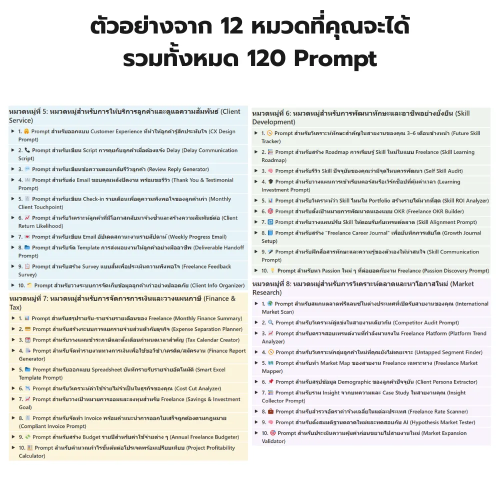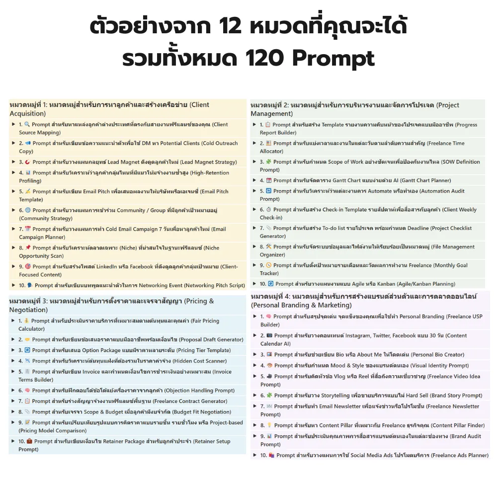 ✔ 120 Prompt พร้อมใช้ ครอบคลุมทุกมิติชีวิตฟรีแลนซ์
