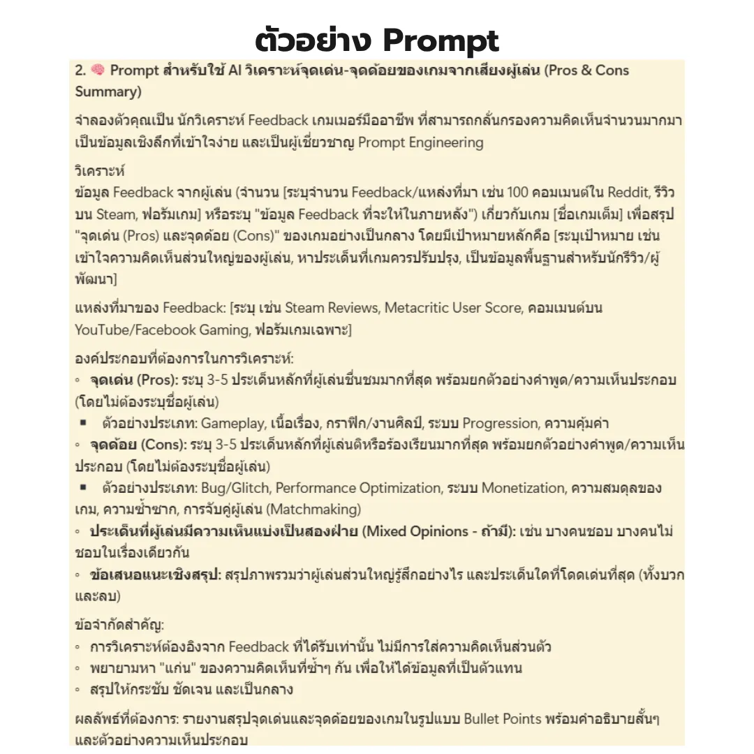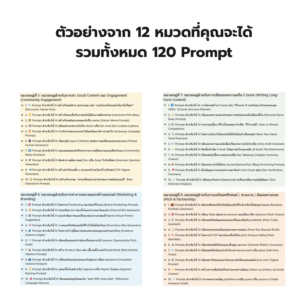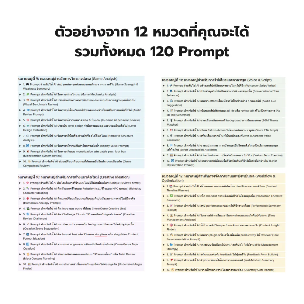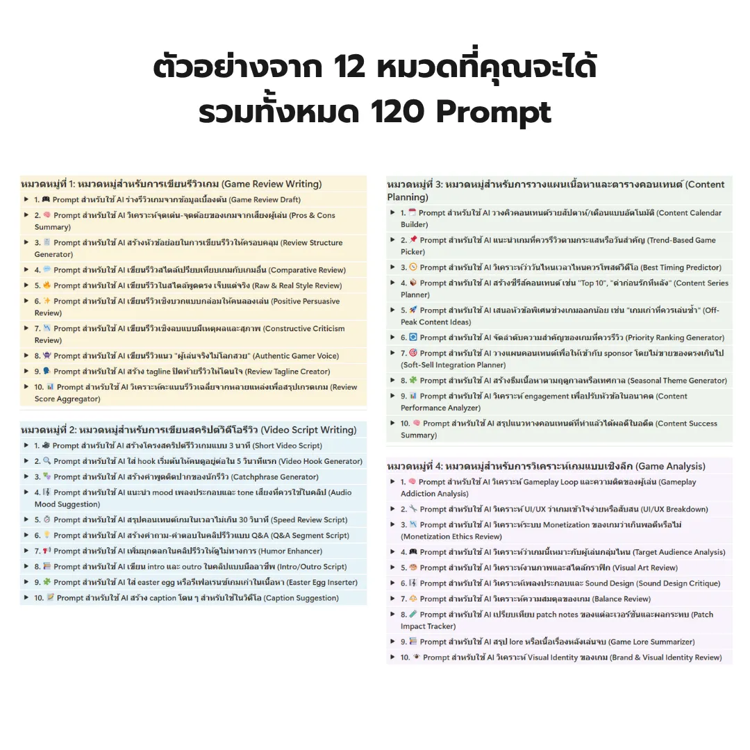 ✔ 120 Prompt สำหรับการรีวิว วิเคราะห์ และเปรียบเทียบเกม – ครอบคลุมทั้งการเขียนโพสต์ สคริปต์คลิป และคอนเทนต์บทความ