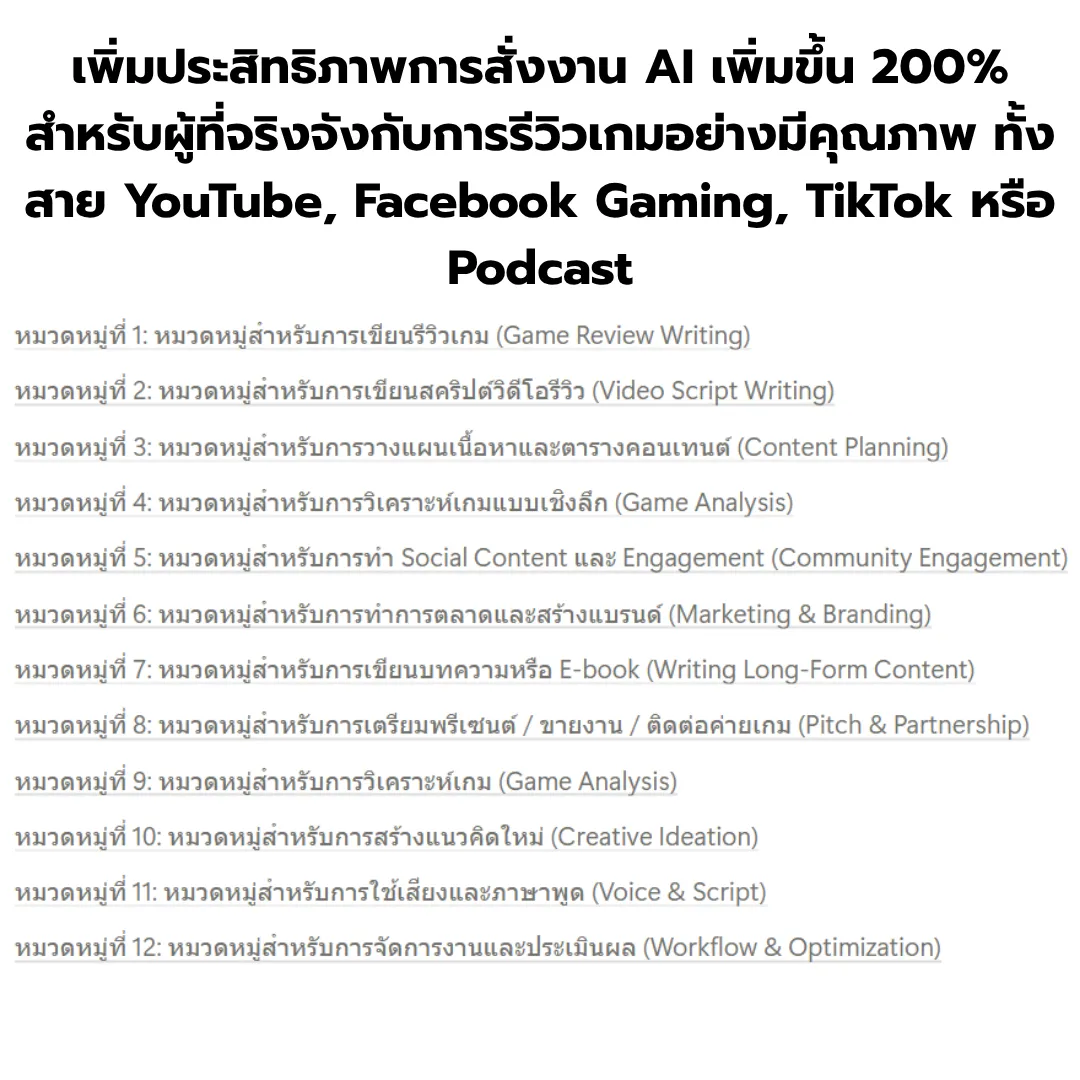 📌 ถ้าคุณทำคอนเทนต์เกม แล้วอยากให้ AI ช่วยให้รีวิวของคุณ “เร็วขึ้น คมขึ้น และน่าเชื่อถือขึ้น” – เล่มนี้ห้ามพลาด!