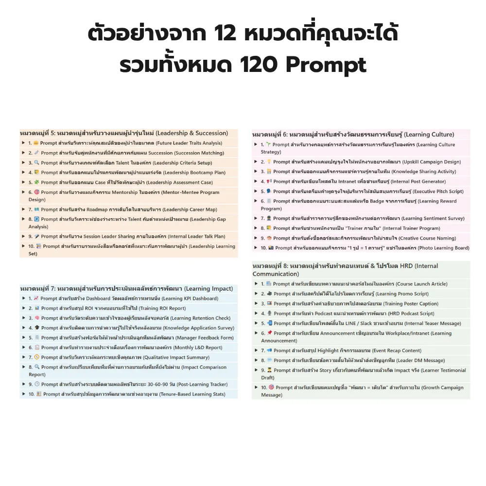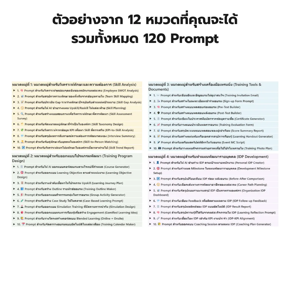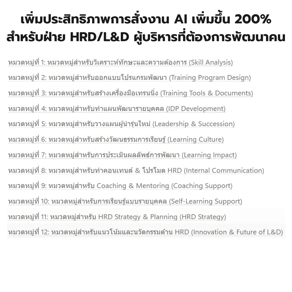 ✔ Prompt สำหรับวางแผนพัฒนาศักยภาพพนักงาน / ออกแบบหลักสูตร / สร้างแผนฝึกอบรม