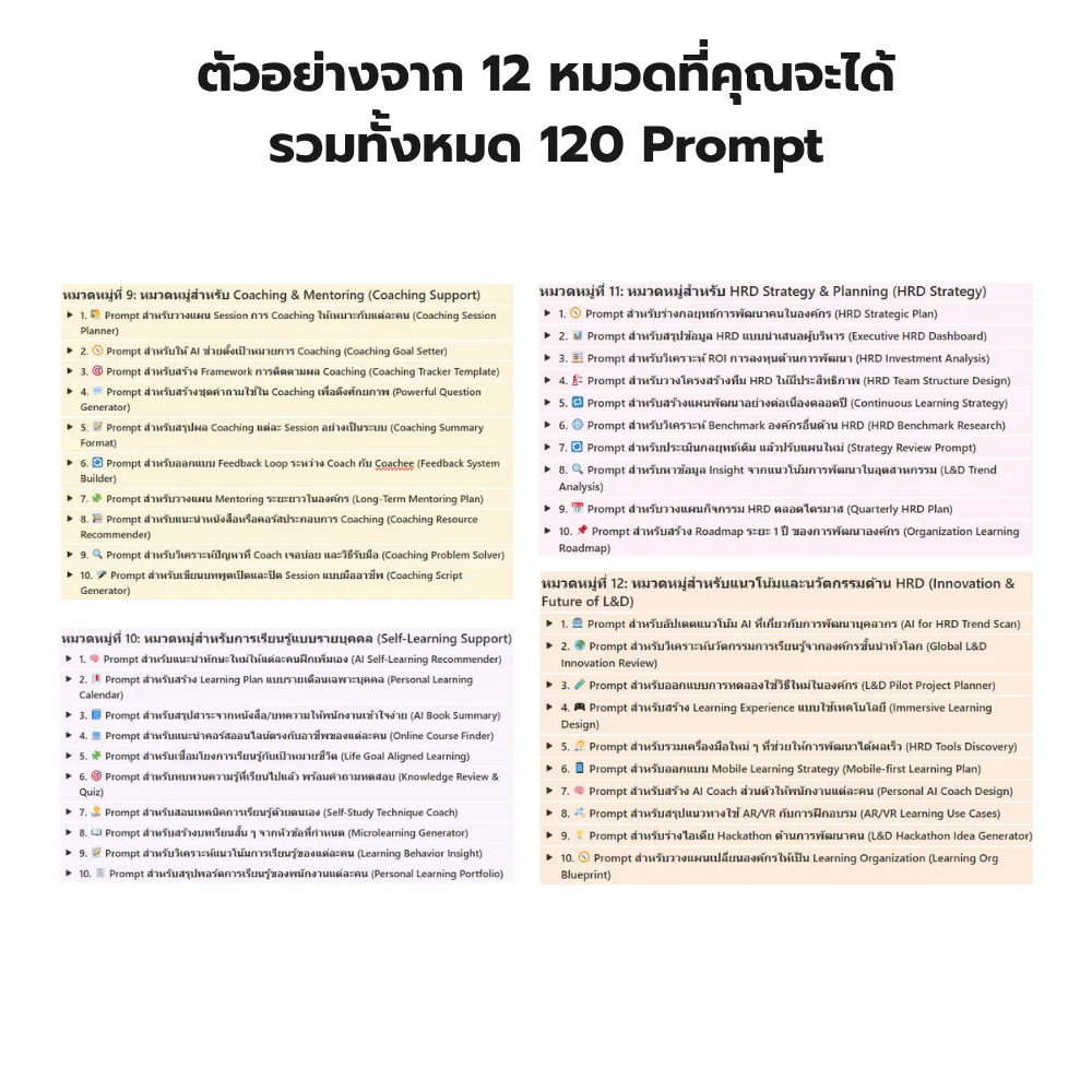 E-book 120 คำสั่งขั้นสูงสำหรับการพัฒนาทรัพยากรบุคคล (HRD) โดยเฉพาะ (Ultimate Prompt Book: 120 Advanced AI Prompts for HRD (Human Resource Development))