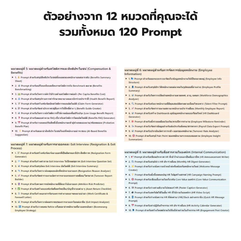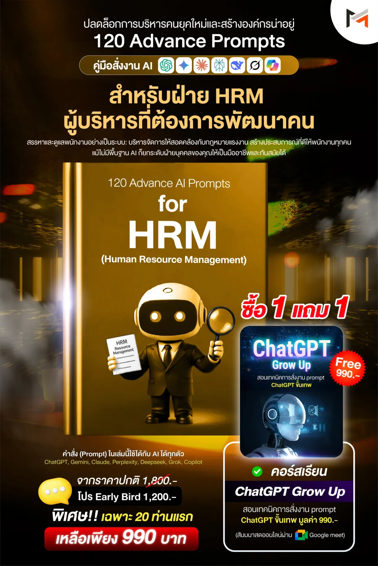 E-book 120 คำสั่งขั้นสูงสำหรับการบริหารทรัพยากรบุคคล (HRM) โดยเฉพาะ (Ultimate Prompt Book: 120 Advanced AI Prompts for HRM (Human Resource Management))