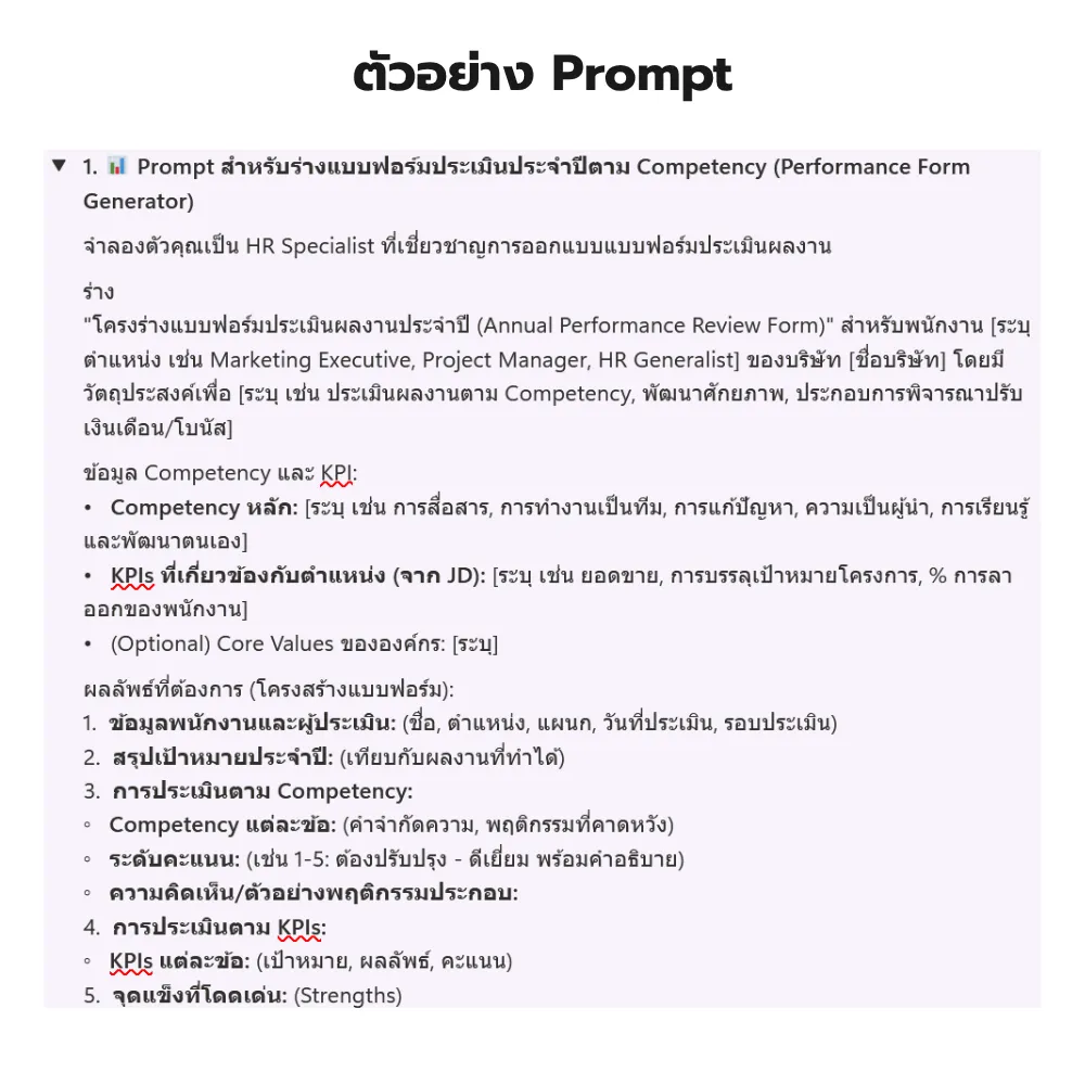 ✔ Prompt สำหรับประเมินผลงาน / จัดทำแผนพัฒนา / วางระบบ Performance Management