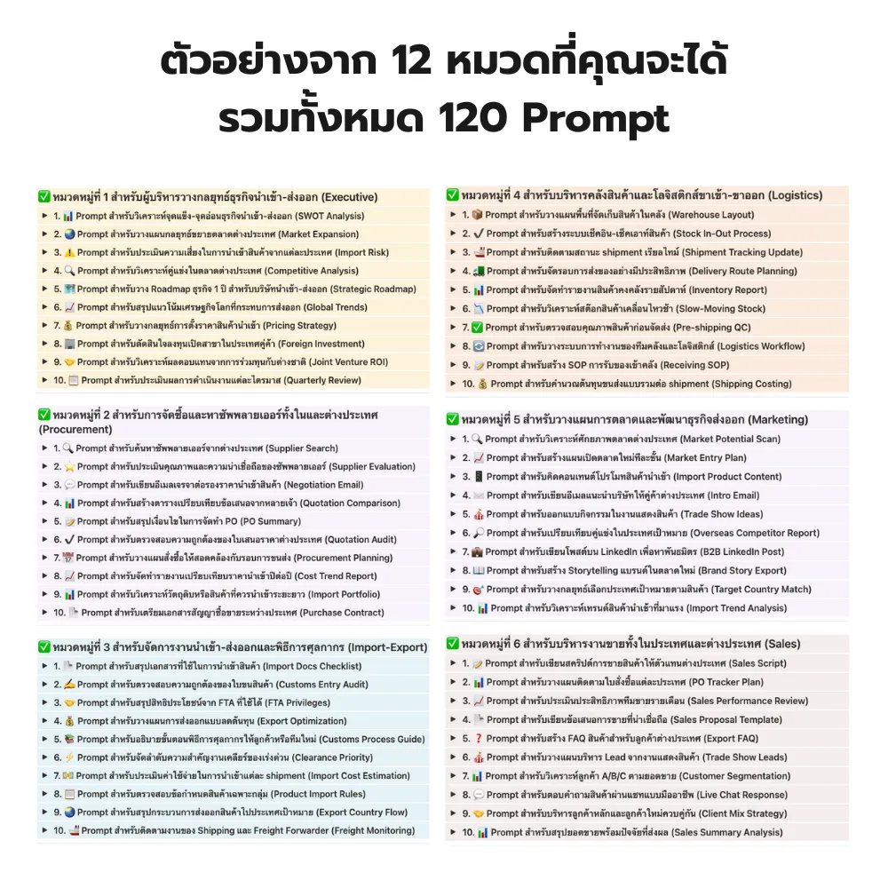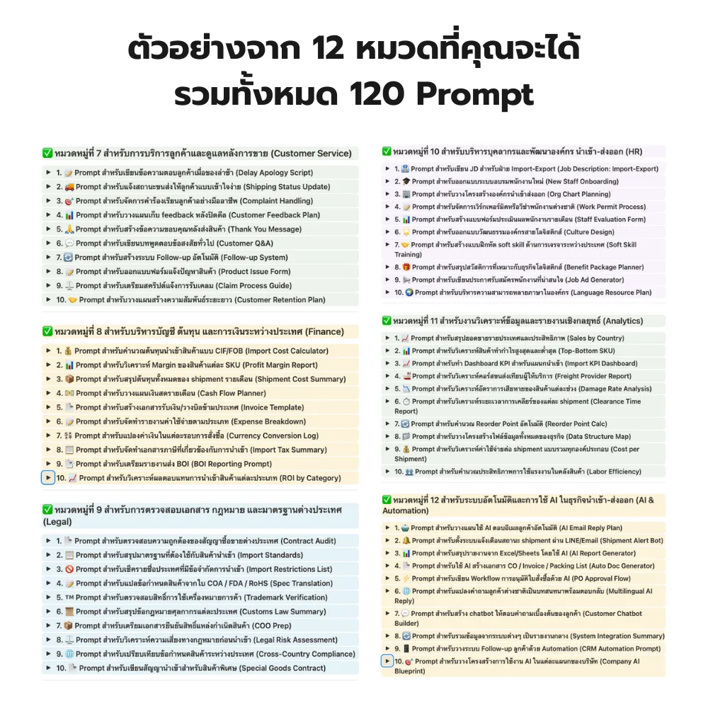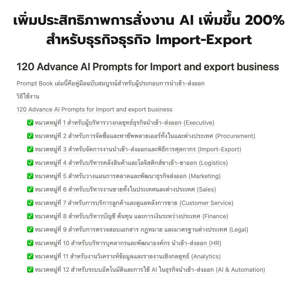 E-book 120 คำสั่งขั้นสูงสำหรับธุรกิจนำเข้า-ส่งออกโดยเฉพาะ (Ultimate Prompt Book: 120 Advance AI Prompts for Import and export business)