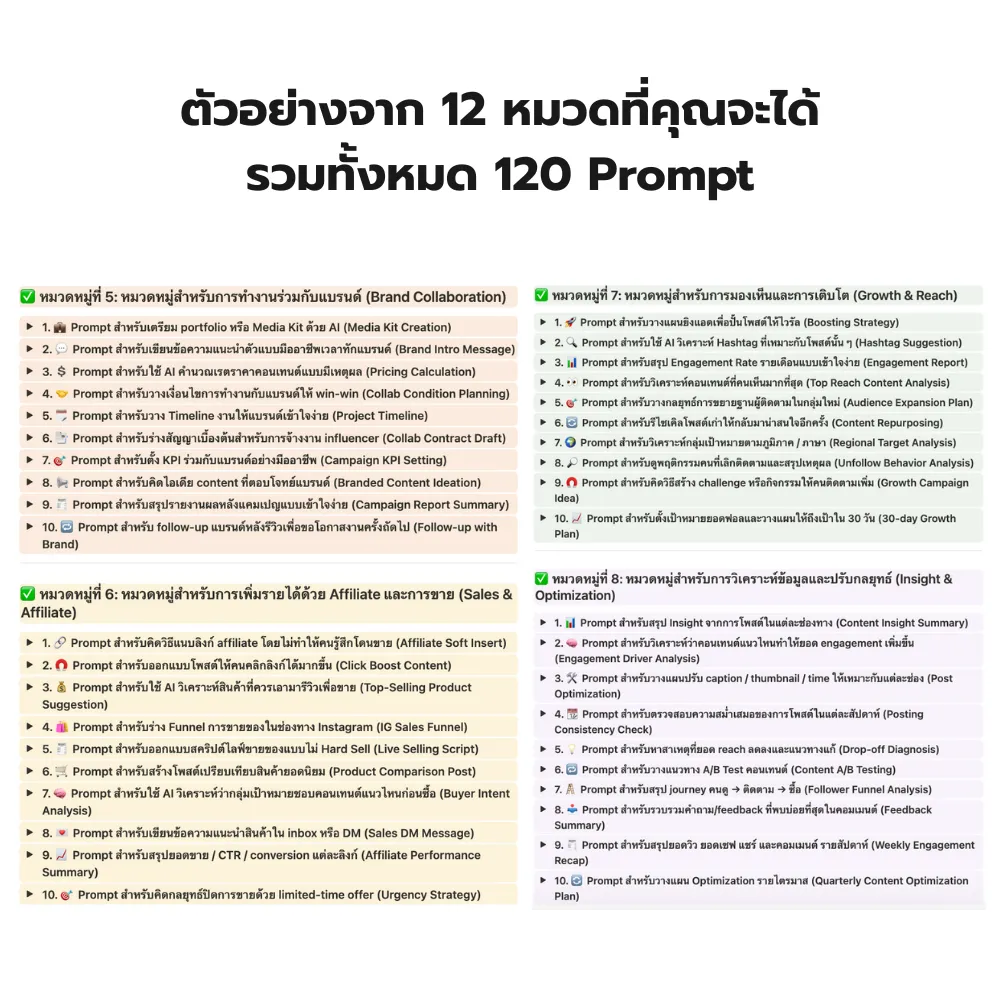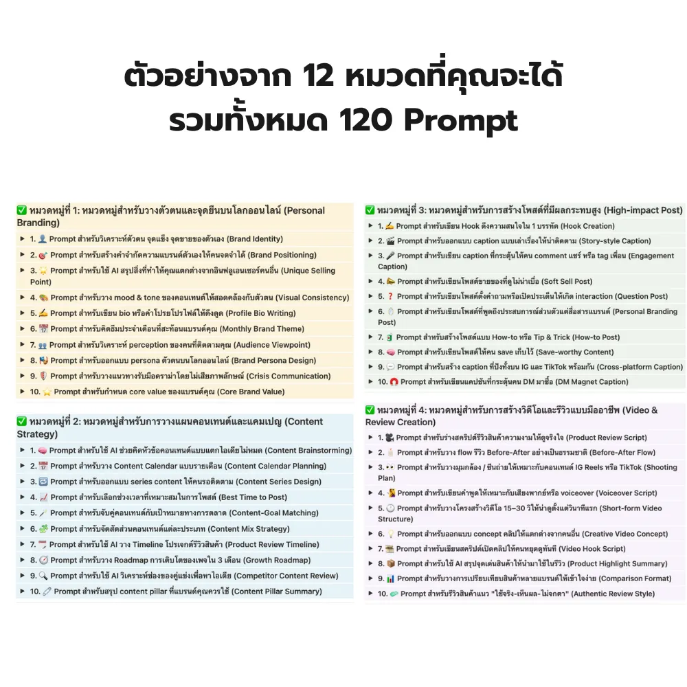 ✔ 120 Prompt สำหรับการเขียนแคปชัน รีวิว ถ่ายคลิป ทำคอนเทนต์