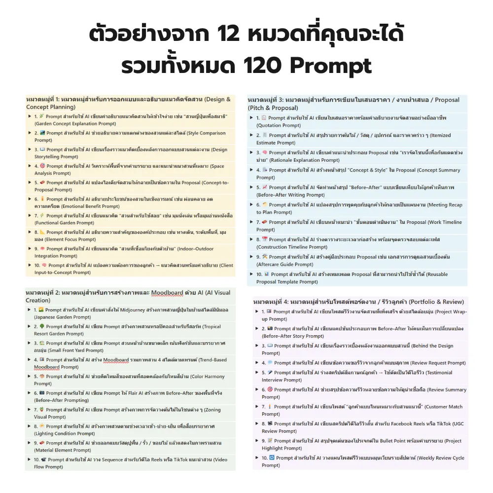 E-book 120 คำสั่งขั้นสูงสำหรับออกแบบสวนและภูมิทัศน์โดยเฉพาะ (Ultimate Prompt Book: 120 Advanced AI Prompts for Landscape & Garden Design Business)