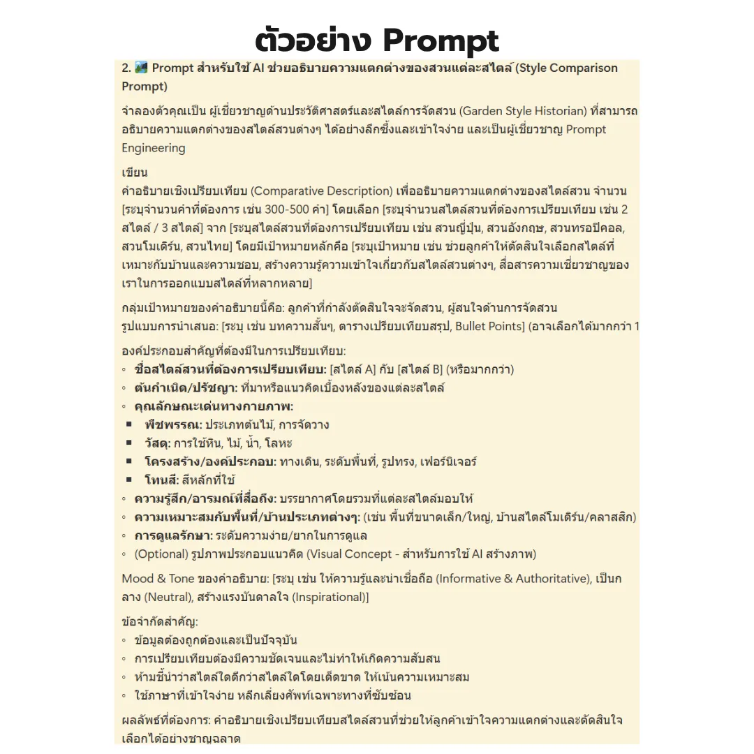 ✔ Prompt สำหรับเล่าคอนเซปต์สวน / แนะนำสไตล์การออกแบบ / รีวิวงานที่ผ่านมา