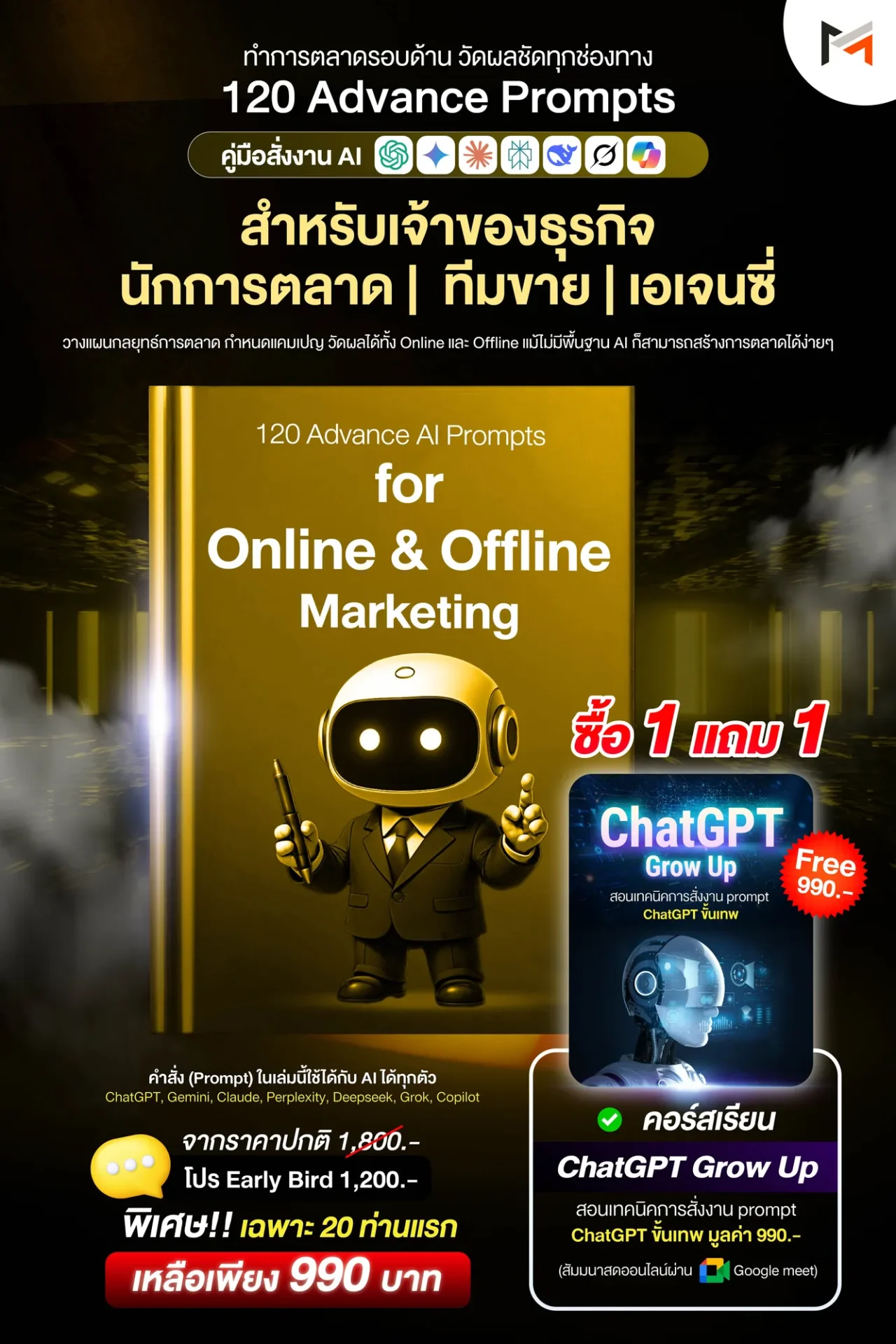 เล่มนี้คือคู่มือของนักการตลาดที่อยากให้ AI เป็นผู้ช่วยคิดแทน–เขียนแทน–วางแผนแทนทั้งออนไลน์และออฟไลน์