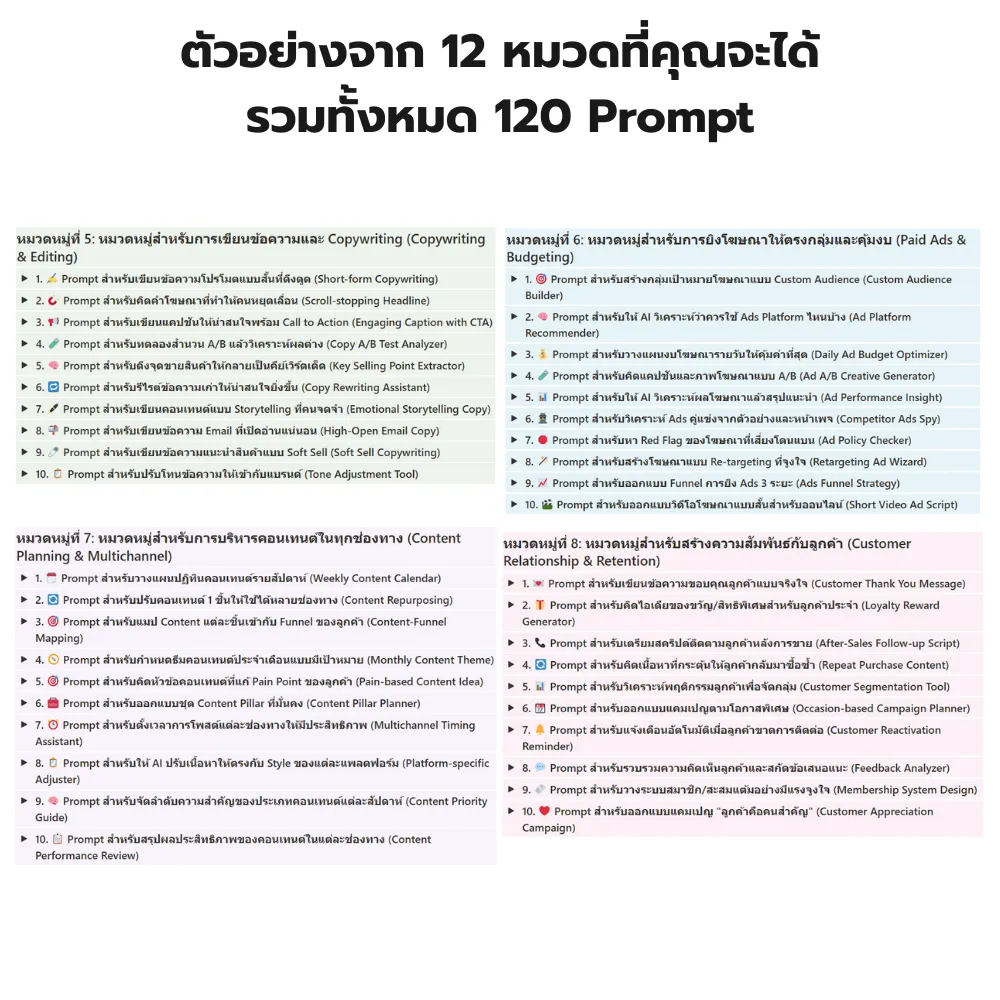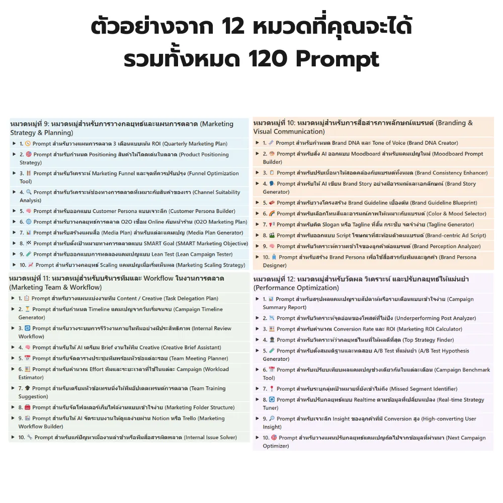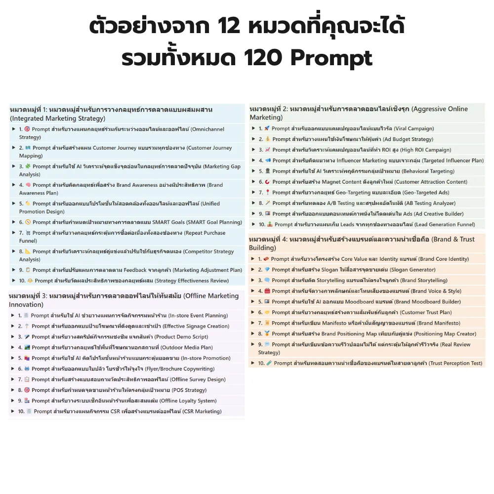 E-book 120 คำสั่งขั้นสูงสำหรับการตลาดออนไลน์และออฟไลน์โดยเฉพาะ (Ultimate Prompt Book: 120 Advanced AI Prompts for Online & Offline Marketing)
