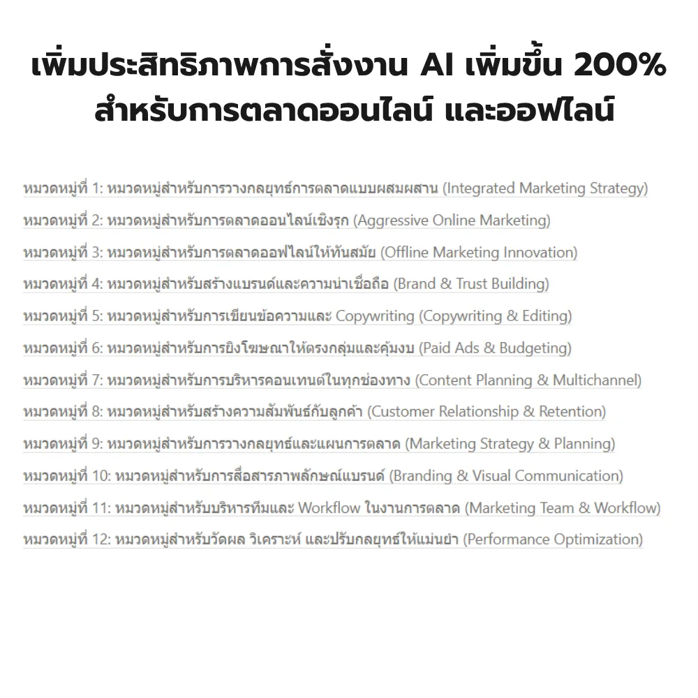✅ ช่วยลดเวลาในการคิด – เขียน – วางแผน ให้การตลาดครบและคมขึ้น