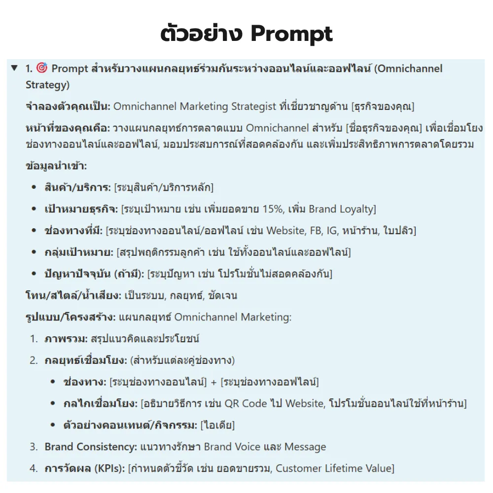 ✔ Prompt สำหรับวางกลยุทธ์การตลาด 360 องศา: Branding, Awareness, Conversion