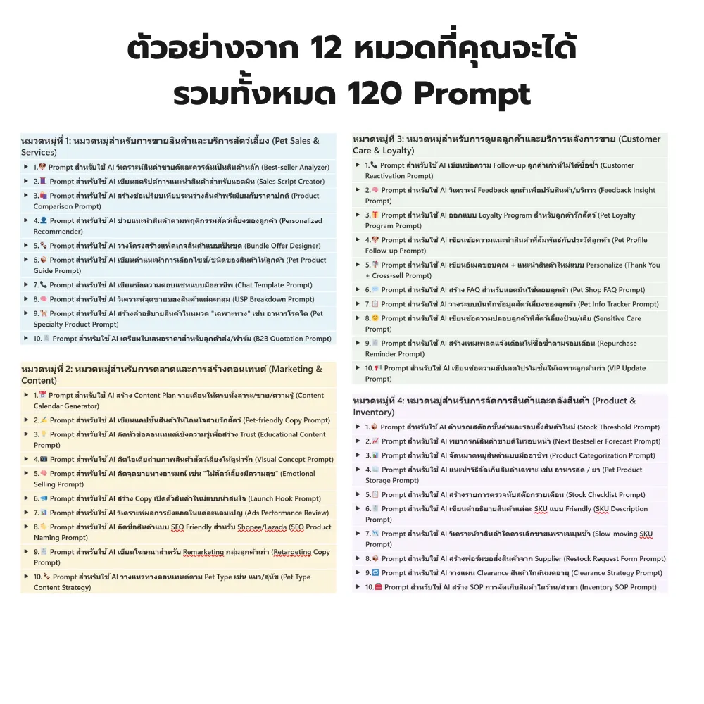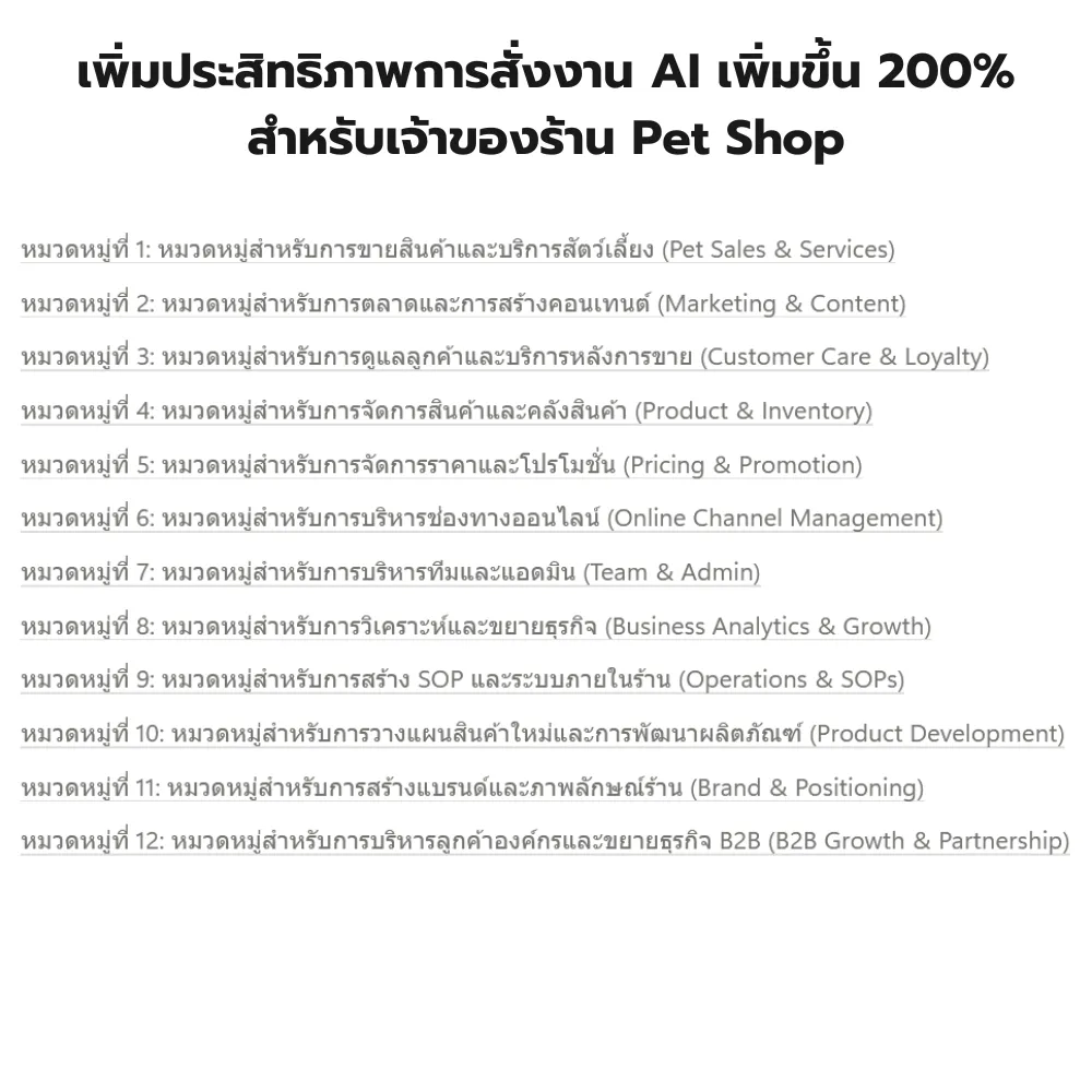 E-book 120 คำสั่งขั้นสูงสำหรับร้านขายสัตว์เลี้ยงโดยเฉพาะ (Ultimate Prompt Book: 120 Advanced AI Prompts for Pet Shop)