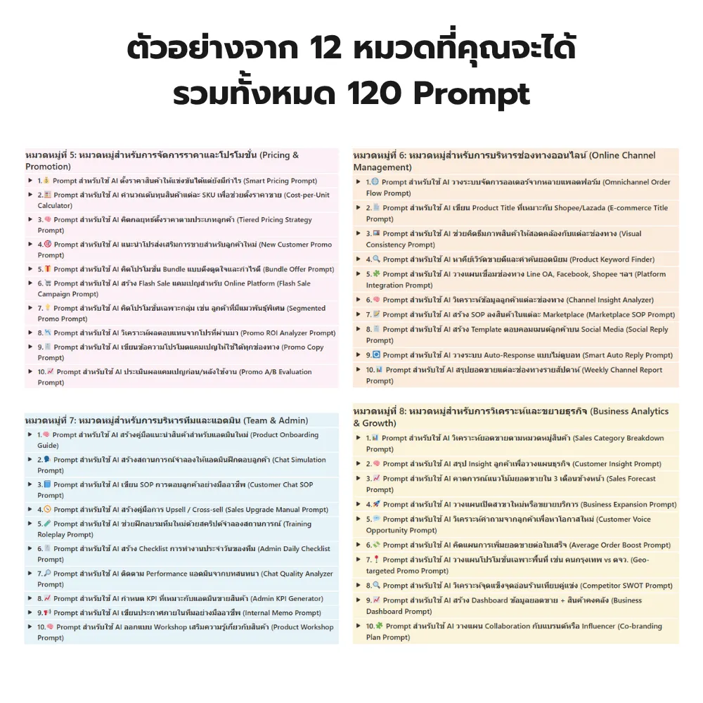✔ Prompt สำหรับตอบคำถามลูกค้า / แนะนำสินค้า / แจ้งโปรโมชัน / ปิดการขาย