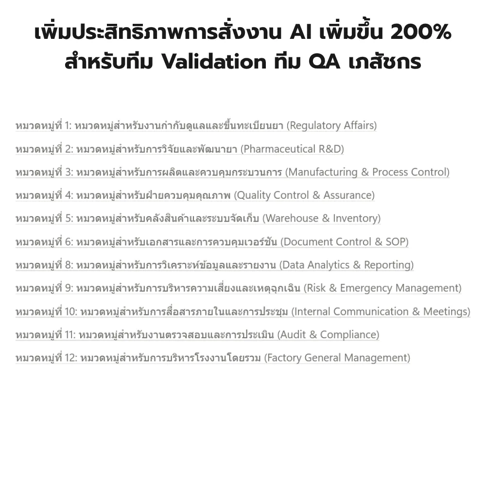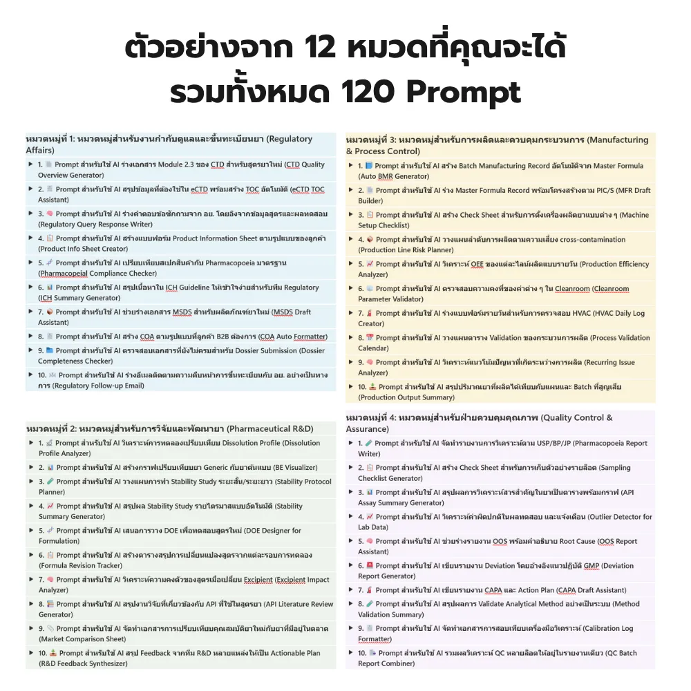 รวมพรอมต์ AI สำหรับโรงงานยาทุกระดับ พร้อมใช้งานจริงในชีวิตประจำวัน