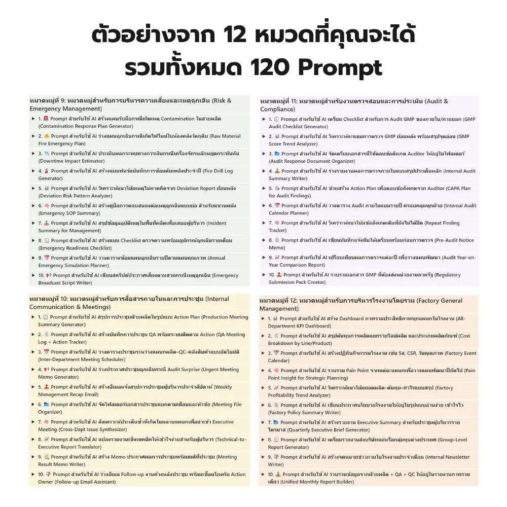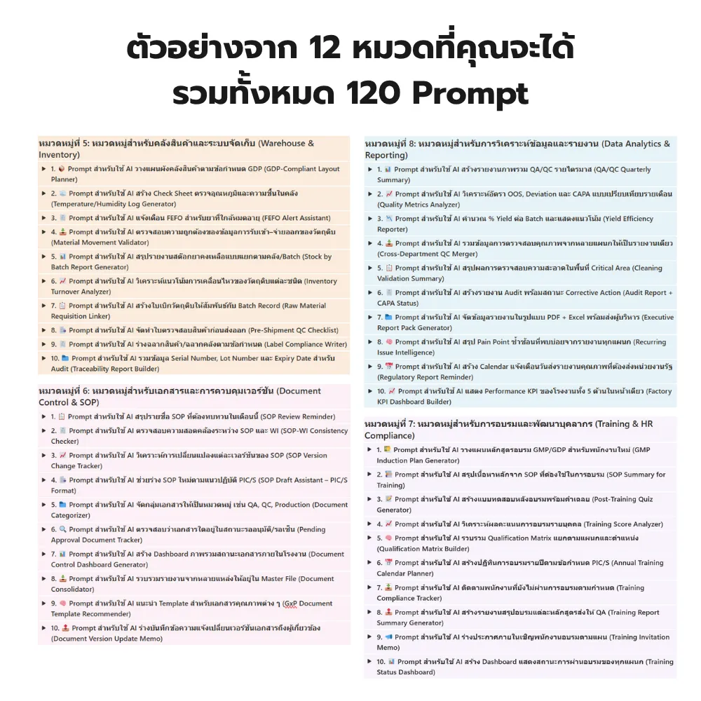 E-book 120 คำสั่งขั้นสูงสำหรับโรงงานเภสัชกรรมโดยเฉพาะ (Ultimate Prompt Book: 120 Advanced AI Prompts for Pharmaceutical Factory)