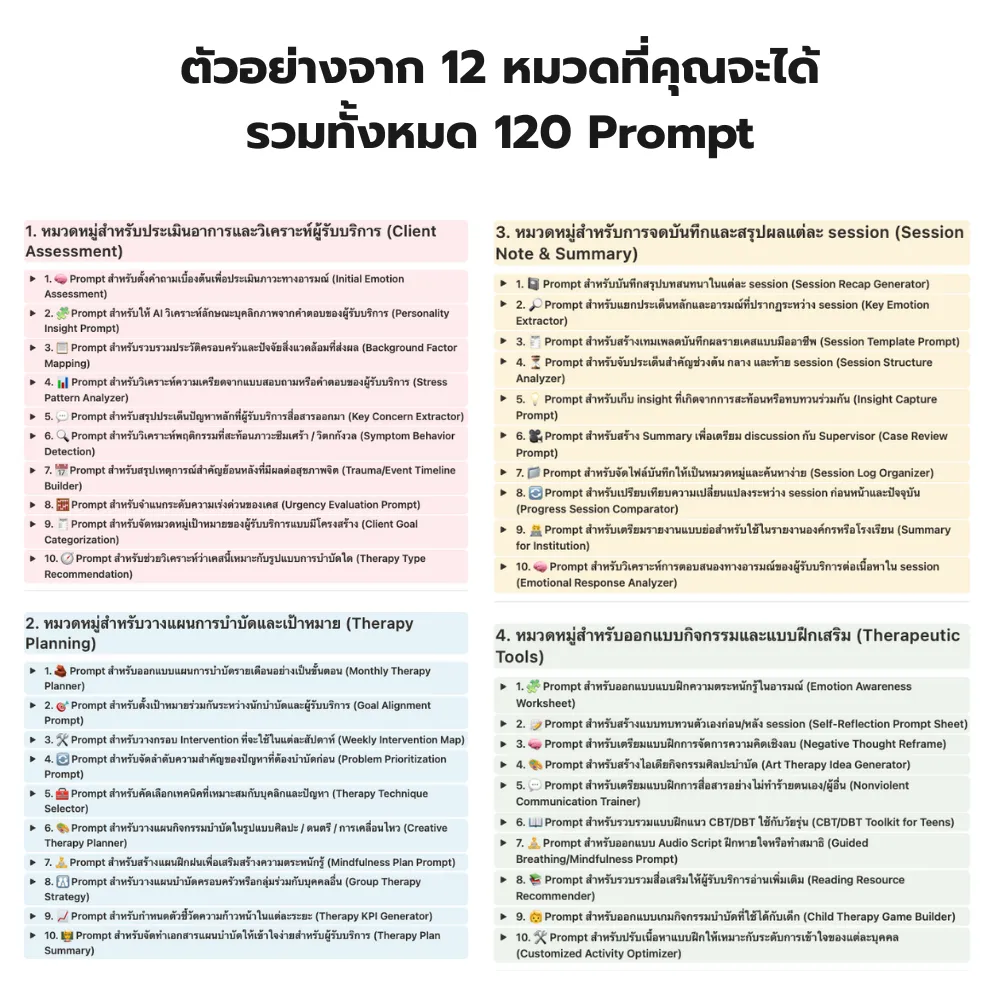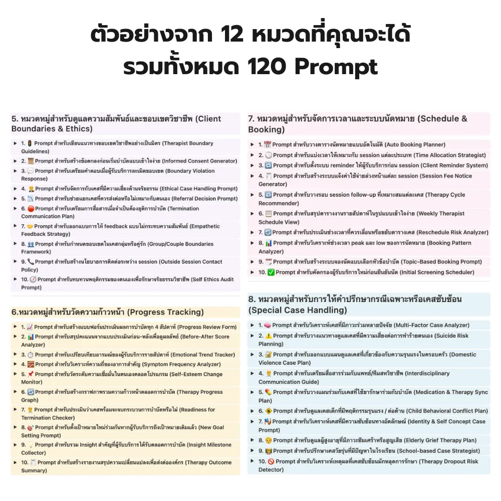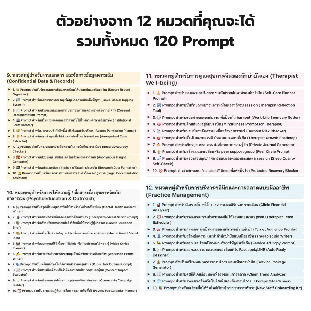 ✔ 120 Prompt สำหรับนักจิตวิทยา – ใช้ได้ทันที ครอบคลุมทั้ง Assessment / Treatment / Case Management