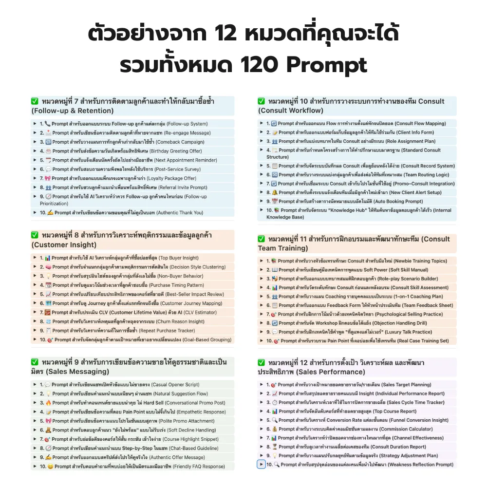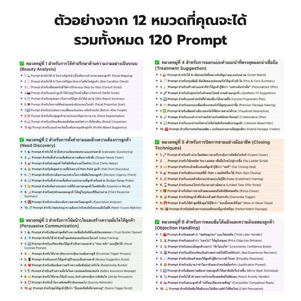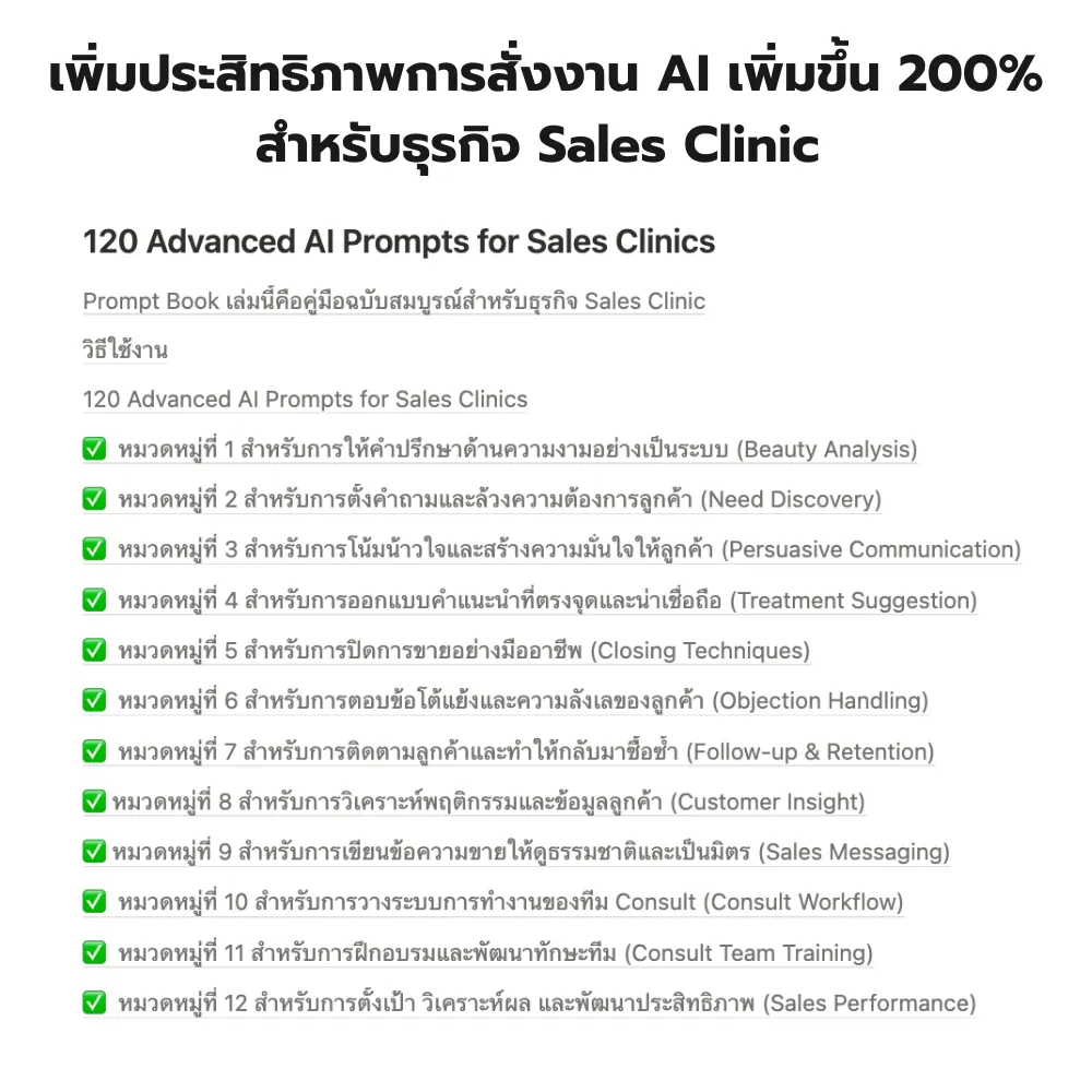 E-book 120 คำสั่งขั้นสูงสำหรับคลินิกขายตรงหรือที่ปรึกษาความงามโดยเฉพาะ (Ultimate Prompt Book: 120 Advanced AI Prompts for Sales Clinics)