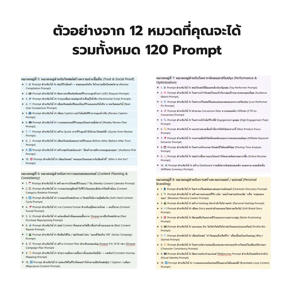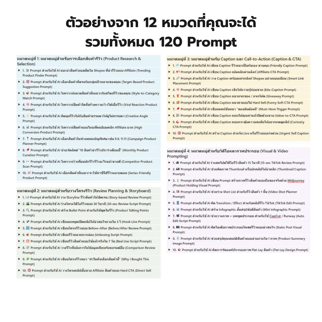 E-book 120 คำสั่งขั้นสูงสำหรับคนรีวิวแอฟฟิลิเอตบน Shopee โดยเฉพาะ (Ultimate Prompt Book: 120 Advanced AI Prompts for Shopee Affiliate Reviewers)