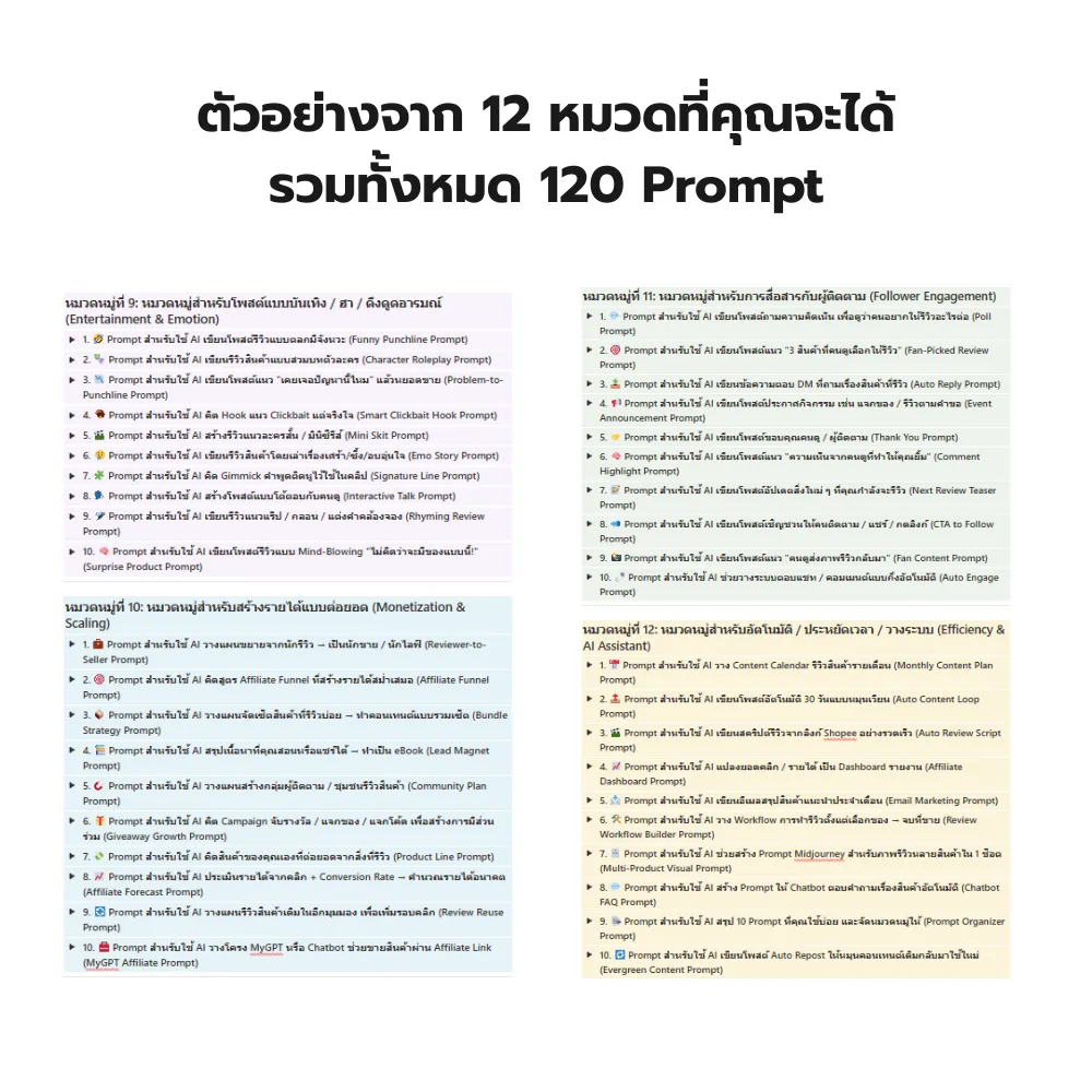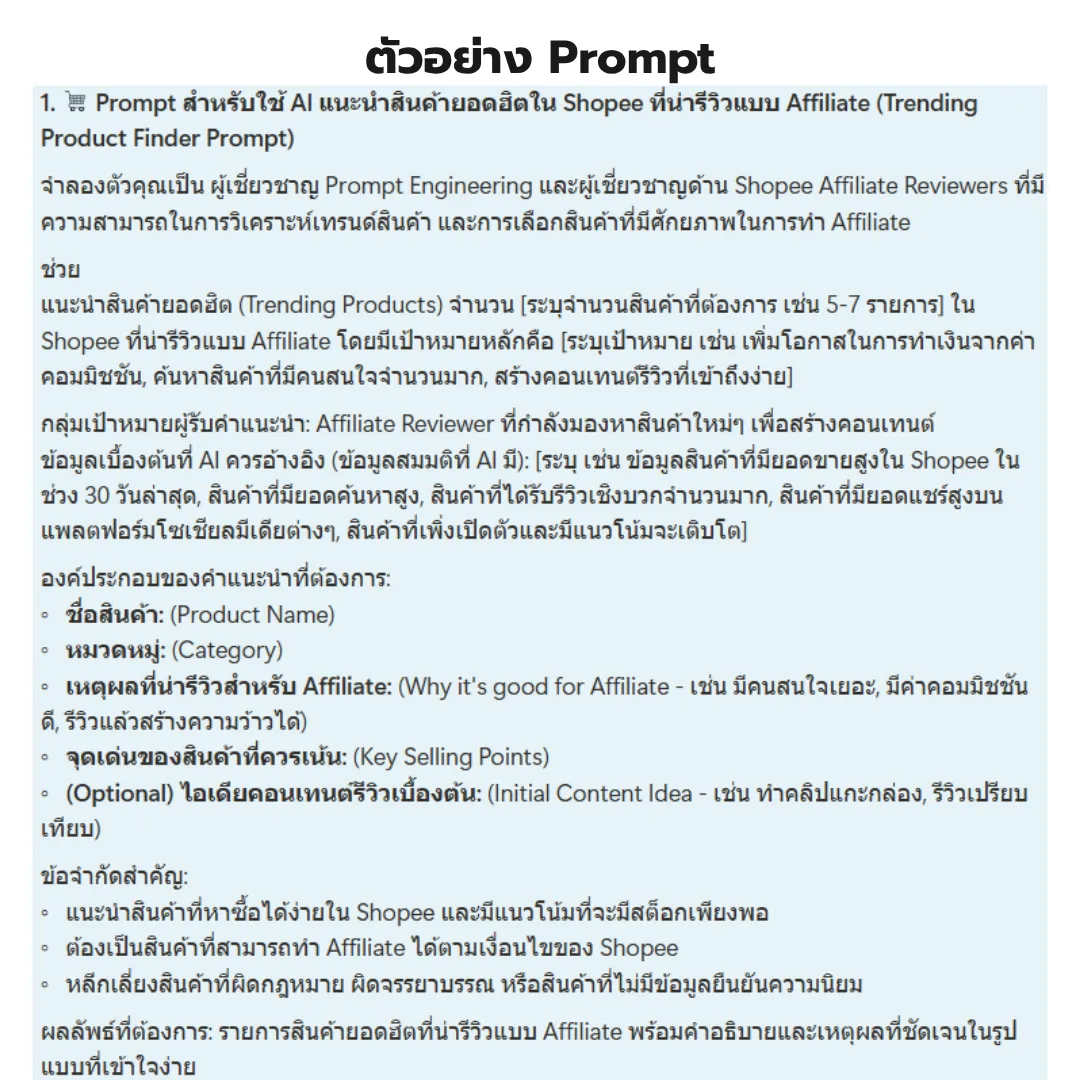 ✔ 120 Prompt สำหรับรีวิวสินค้า Shopee – เขียนโพสต์ ทำสคริปต์ รีวิวสั้น รีวิวเต็ม ตอบคอมเมนต์