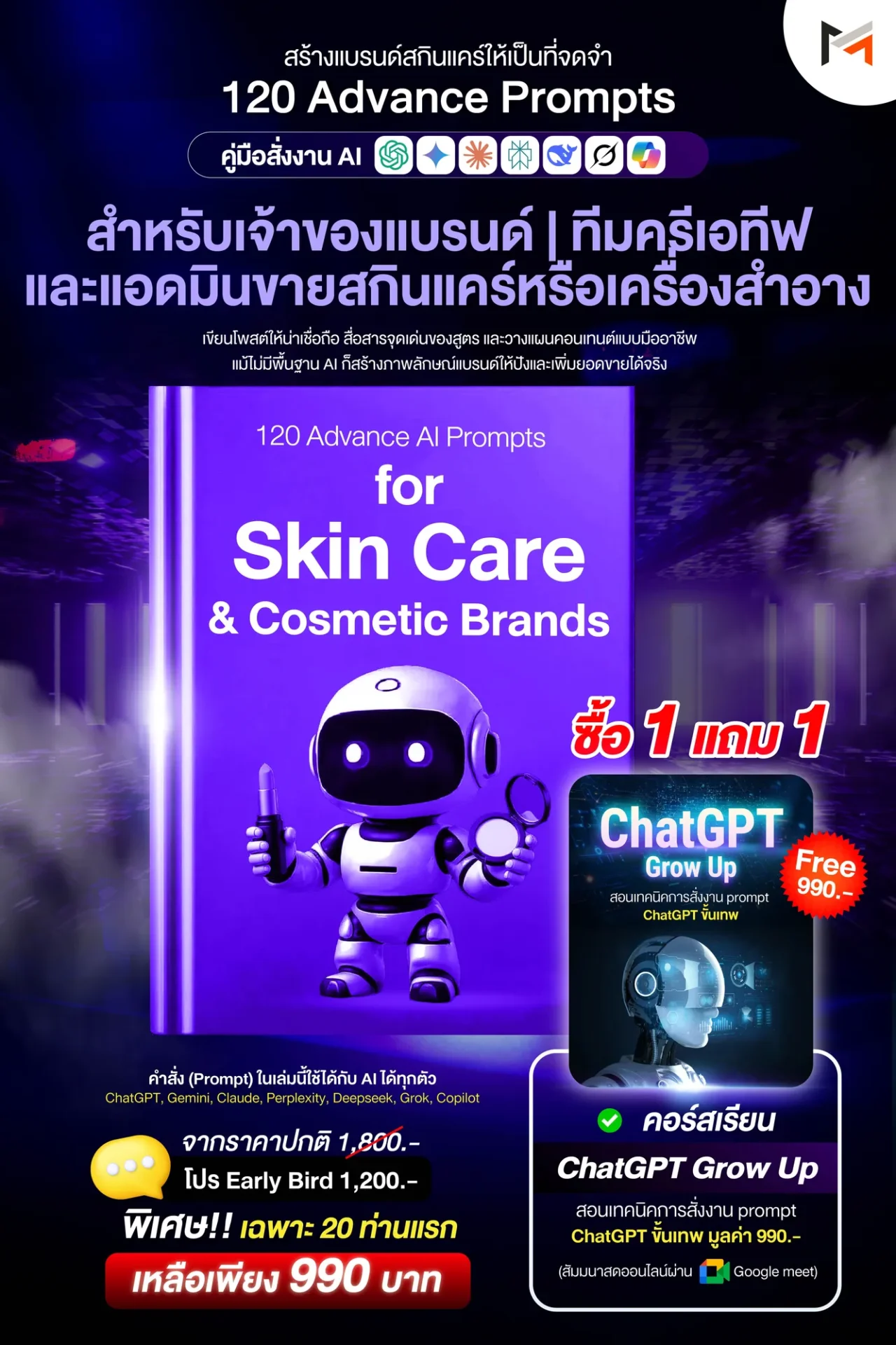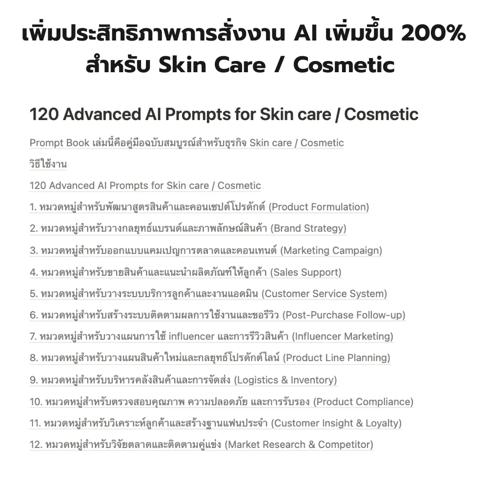 E-book 120 คำสั่งขั้นสูงสำหรับดูแลผิวพรรณและเครื่องสำอางโดยเฉพาะ (Ultimate Prompt Book: 120 Advanced AI Prompts for Skin care / Cosmetic)