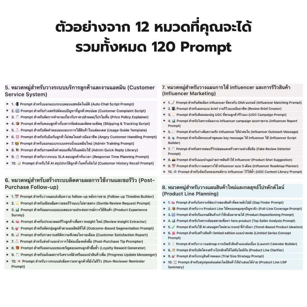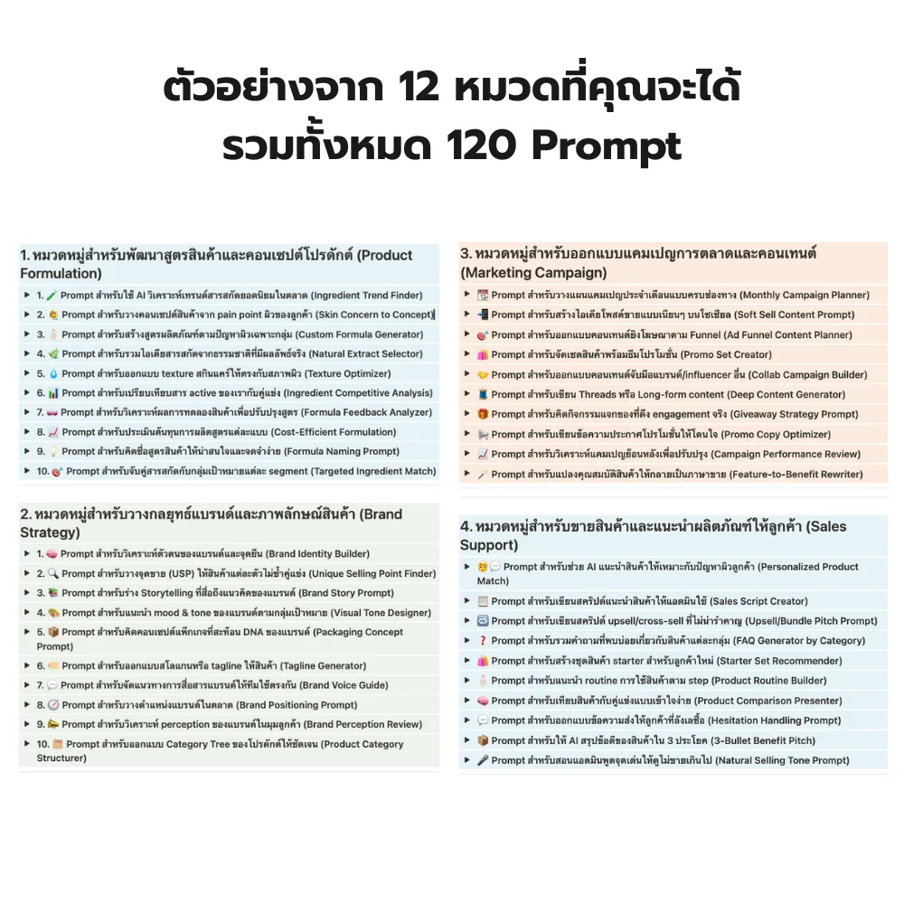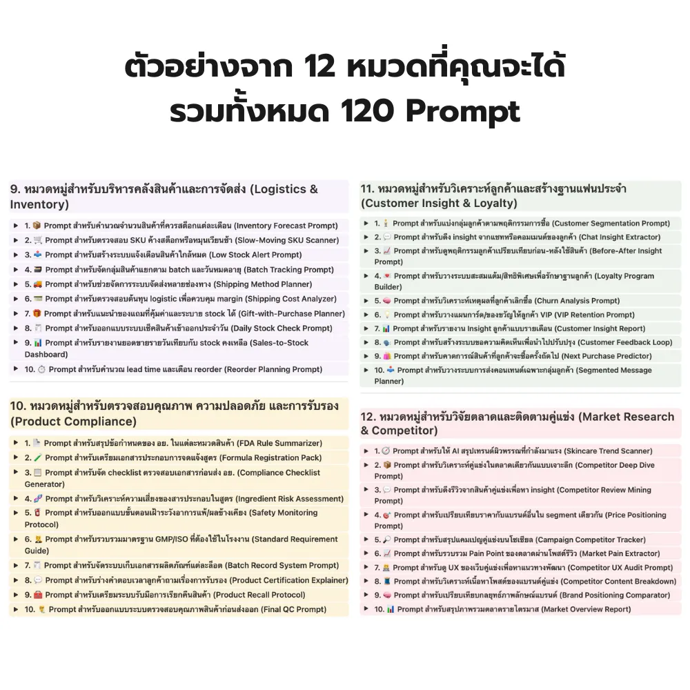 ✔ 120 Prompt ระดับ Advanced – แบ่งครบ 12 หมวดงานจริงของนายหน้า