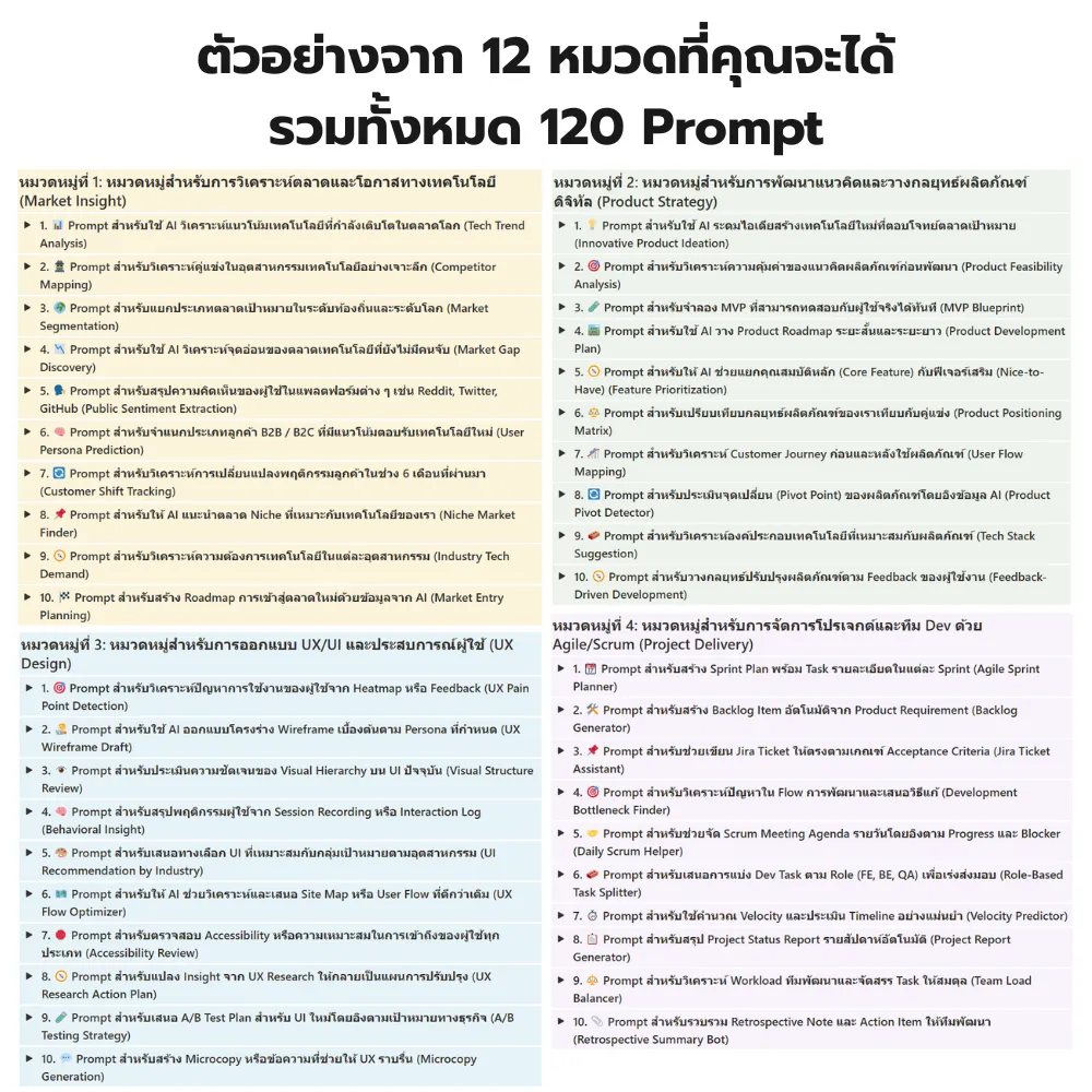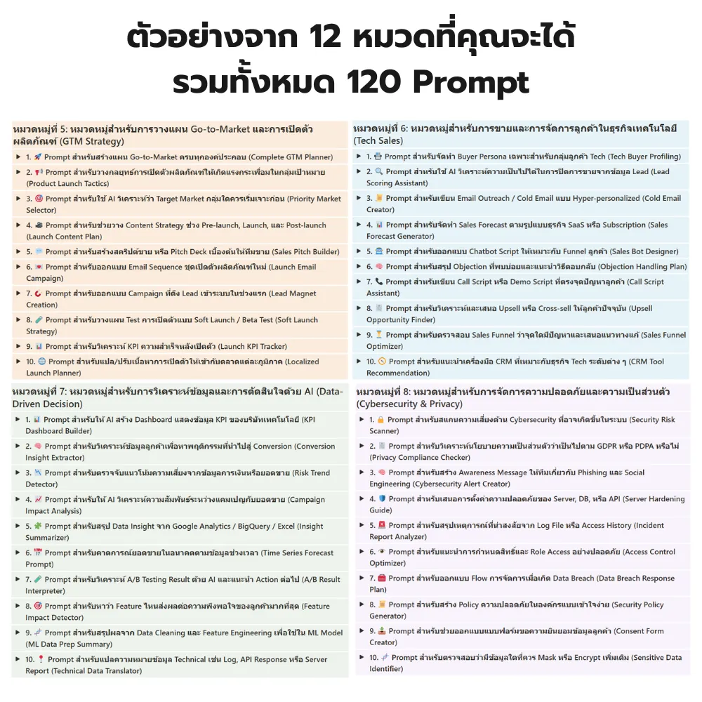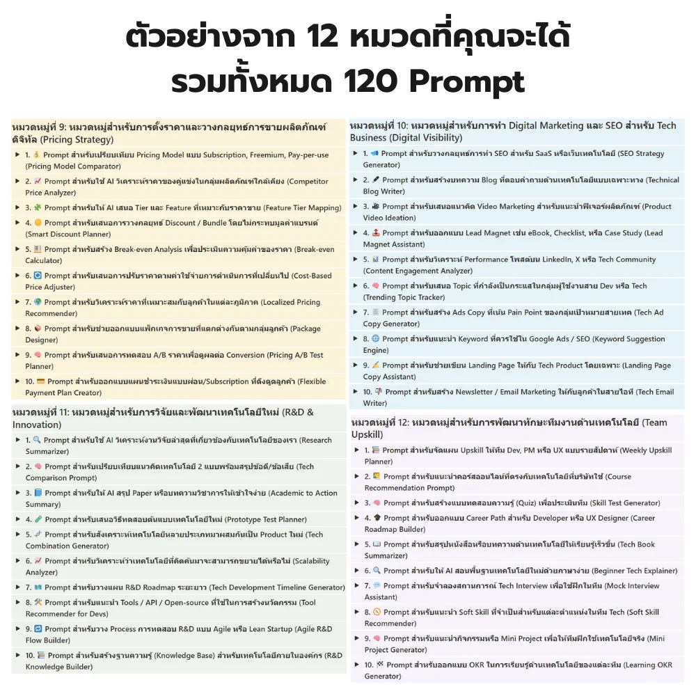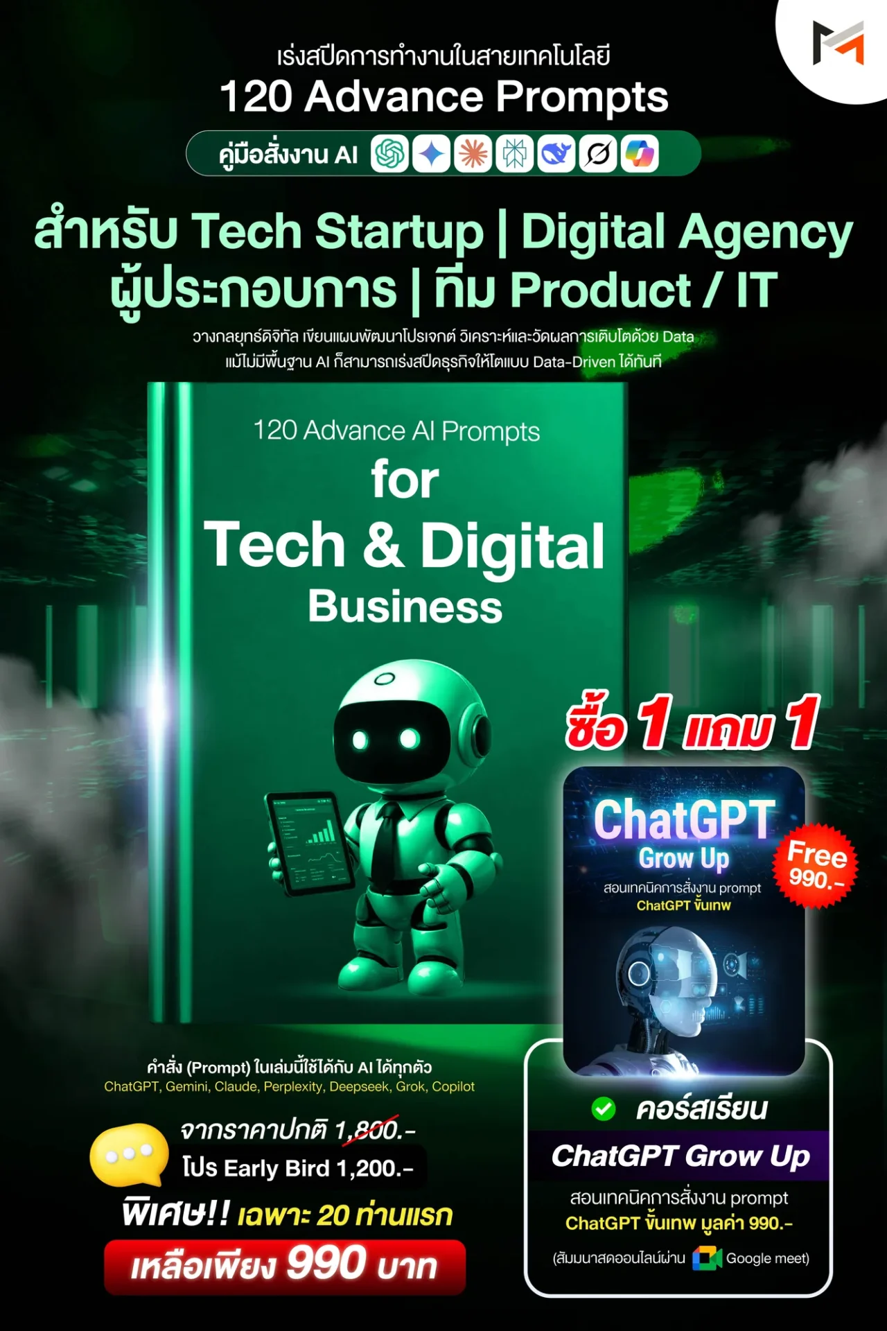 ✔ 120 Prompt สำหรับงาน Tech & Digital – คิด วิเคราะห์ และสื่อสาร ได้เร็วขึ้น