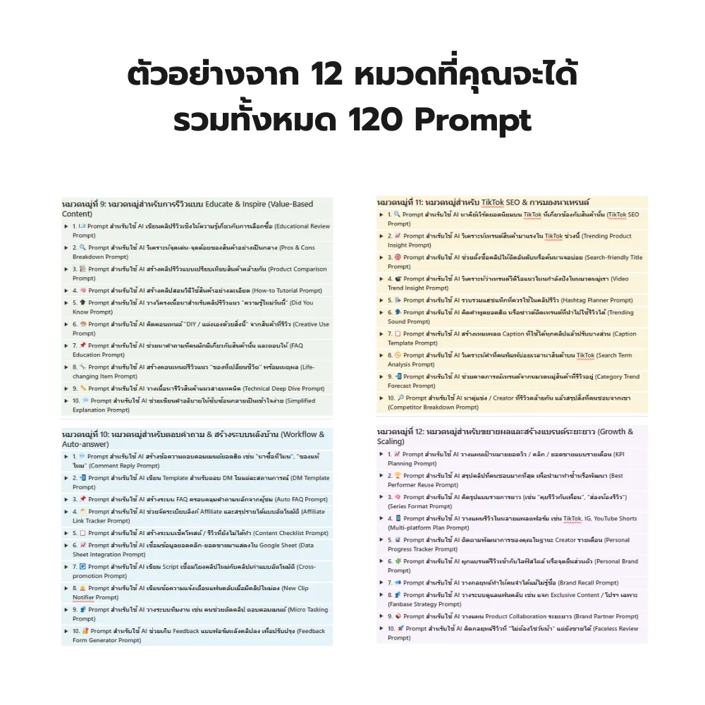 E-book 120 คำสั่งขั้นสูงสำหรับคนรีวิวแอฟฟิลิเอตบน TikTok โดยเฉพาะ (Ultimate Prompt Book: 120 Advanced AI Prompts for TikTok Affiliate Reviewers)
