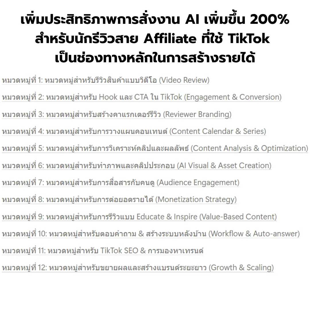 คู่มือ AI สำหรับนักรีวิวสาย TikTok Affiliate – คิดไว พูดเป๊ะ คลิปปัง ขายคล่อง