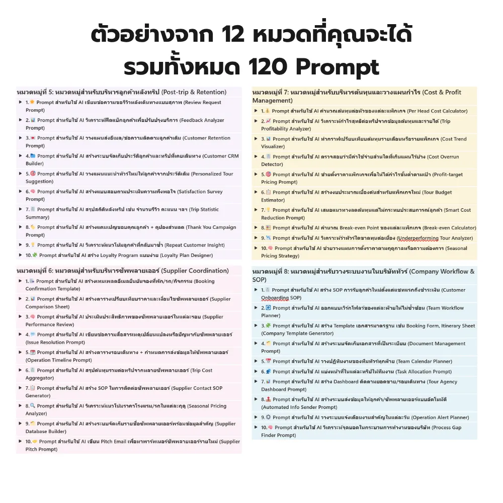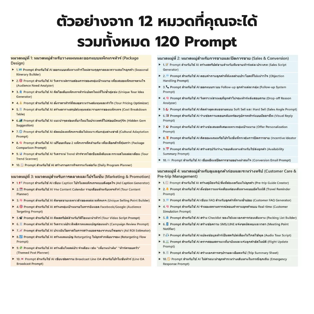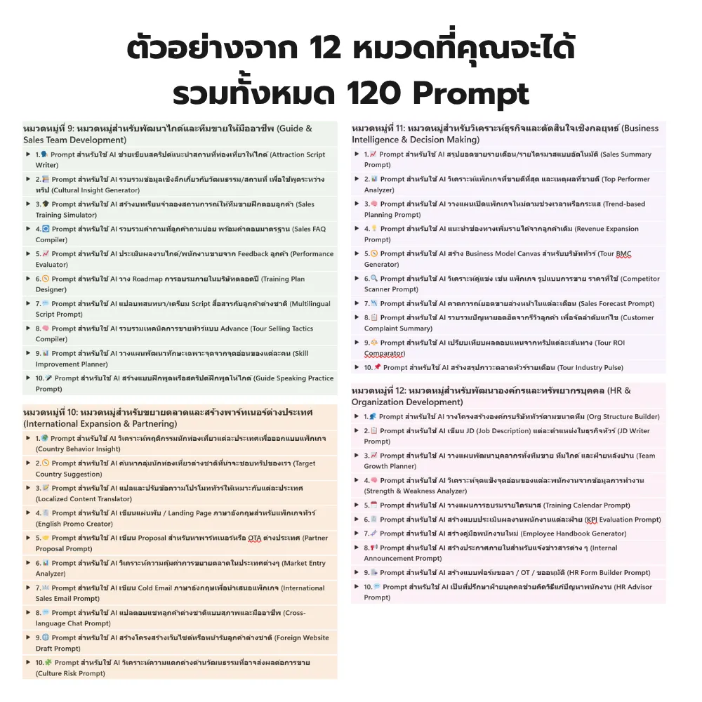 E-book 120 คำสั่งขั้นสูงสำหรับธุรกิจทัวร์และเอเจนซี่ท่องเที่ยว (Ultimate Prompt Book: 120 Advanced AI Prompts for Tour Agency)