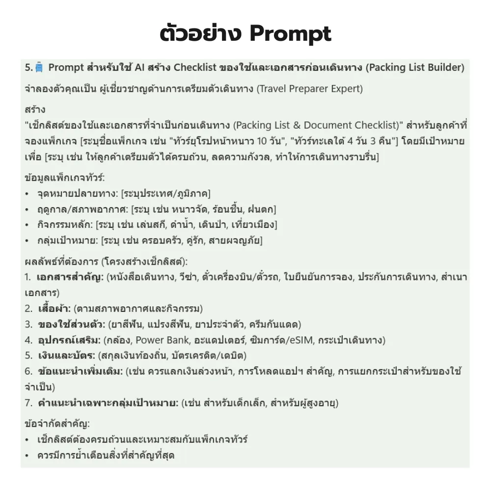 ✔ Prompt สำหรับเขียนโพสต์ขายทัวร์ / โปรโมตโปรโมชั่น / รีวิวจากลูกค้า