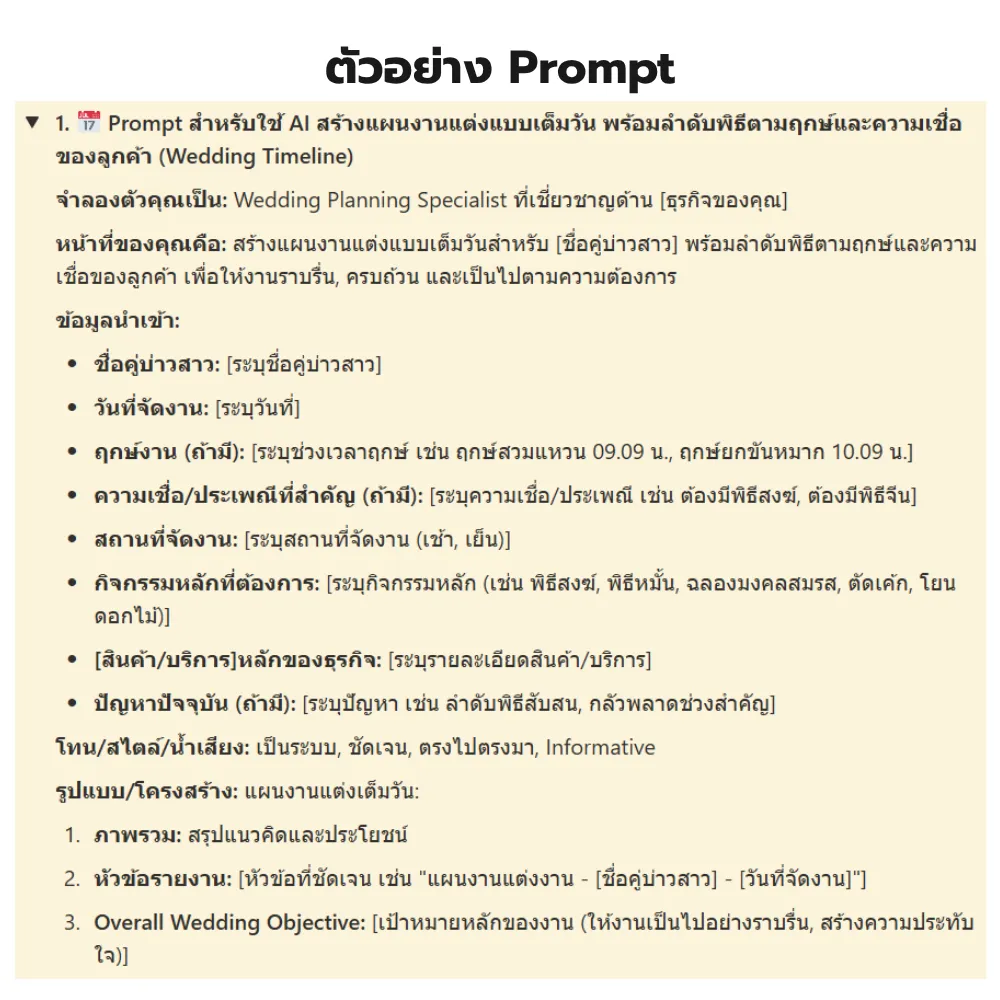 คู่มือ AI Prompt สำหรับมือโปรด้านงานแต่ง – ครบทั้งวางแผน พิธีการ และบริการแบบไทยแท้