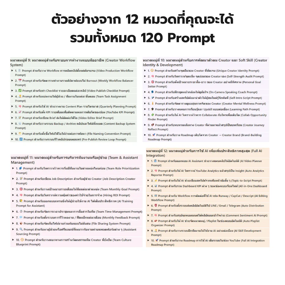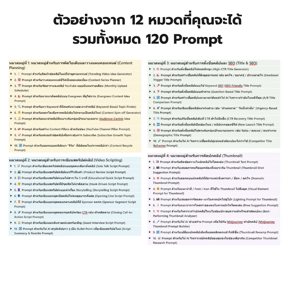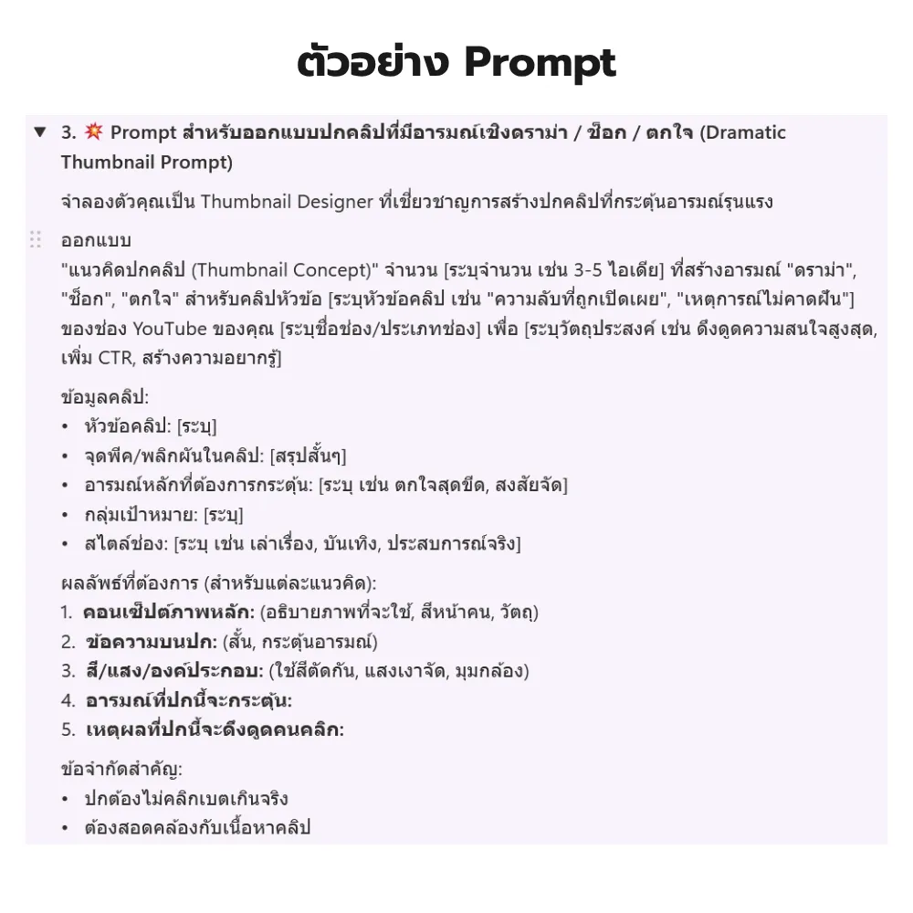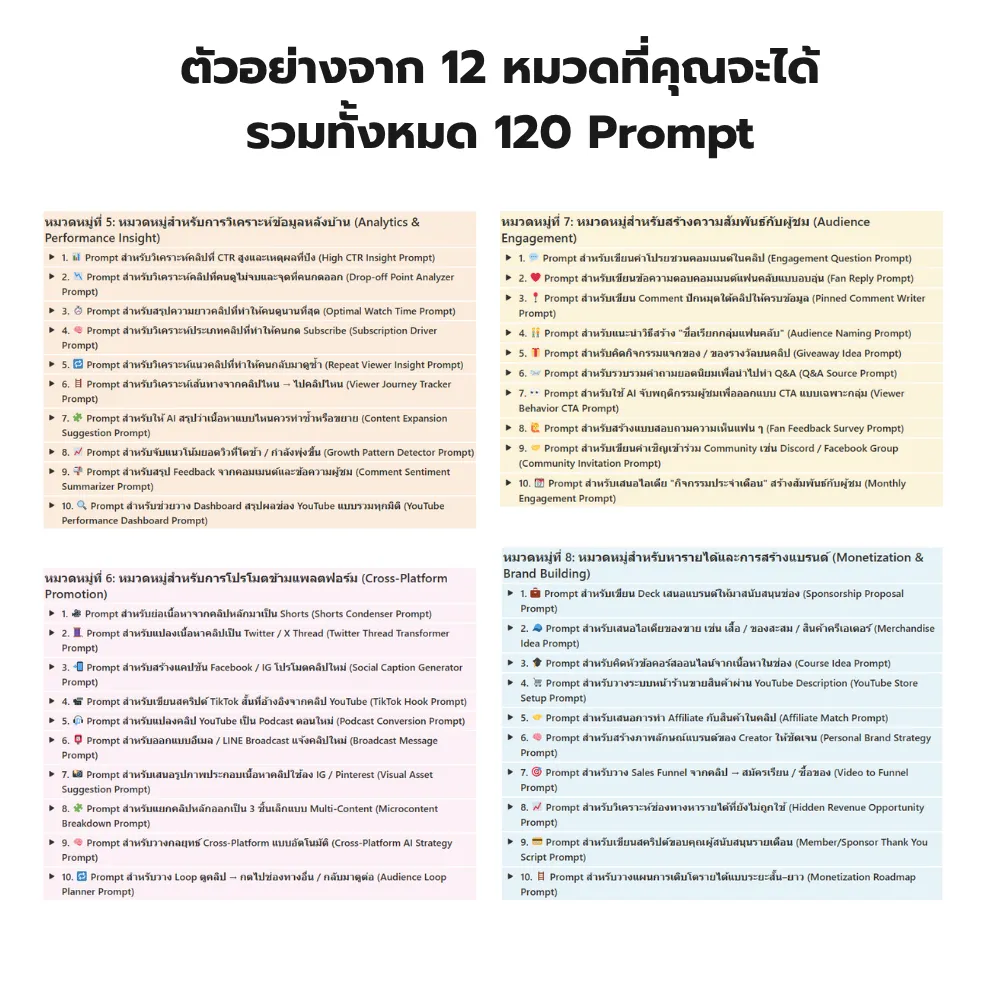 ✅ ไม่ต้องเริ่มจากศูนย์ – แค่เลือกพรอมต์แล้วปรับให้ตรงกับช่องของคุณ